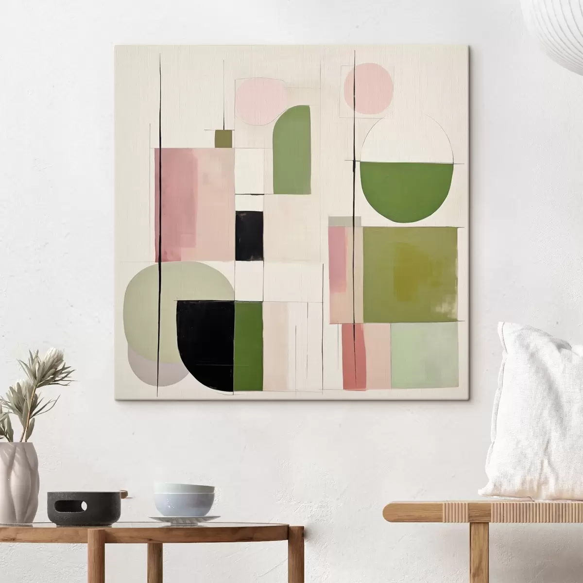 Obraz Sztuka abstrakcyjna z kolorowymi blokami i liniami s46313