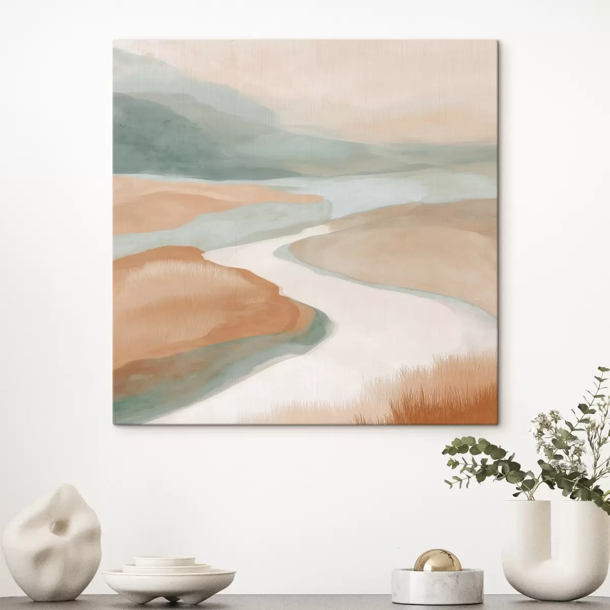 Obraz Abstrakcyjny krajobraz z rzeką w kolorach pomarańczowym i zielonym Nr s46316