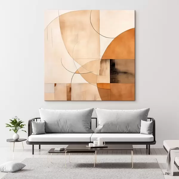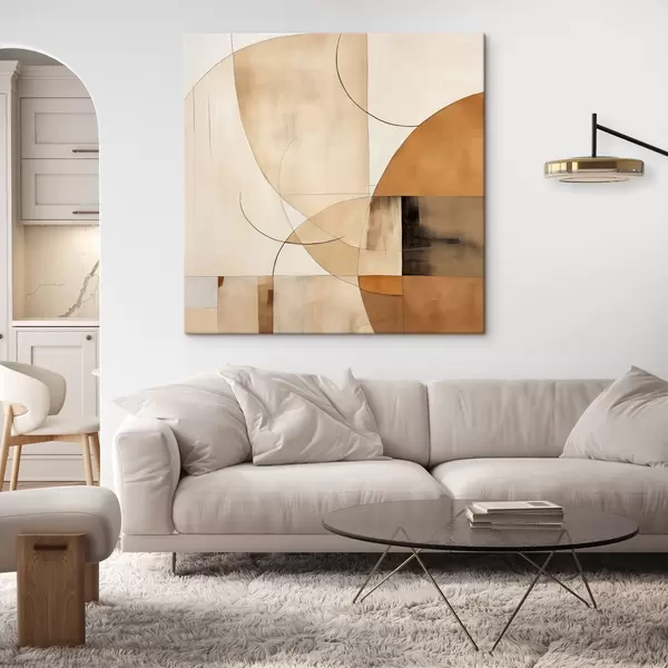 Obraz Geometryczna abstrakcja z zakrzywionymi liniami i beżowymi odcieniami s46320