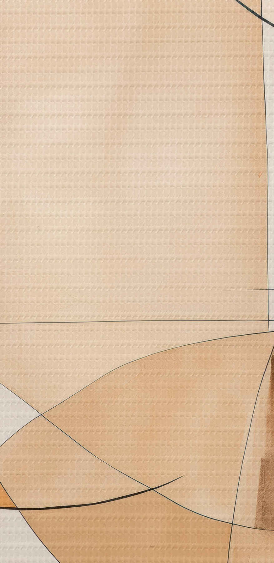 Obraz Geometryczna abstrakcja z zakrzywionymi liniami i beżowymi odcieniami Nr s46320
