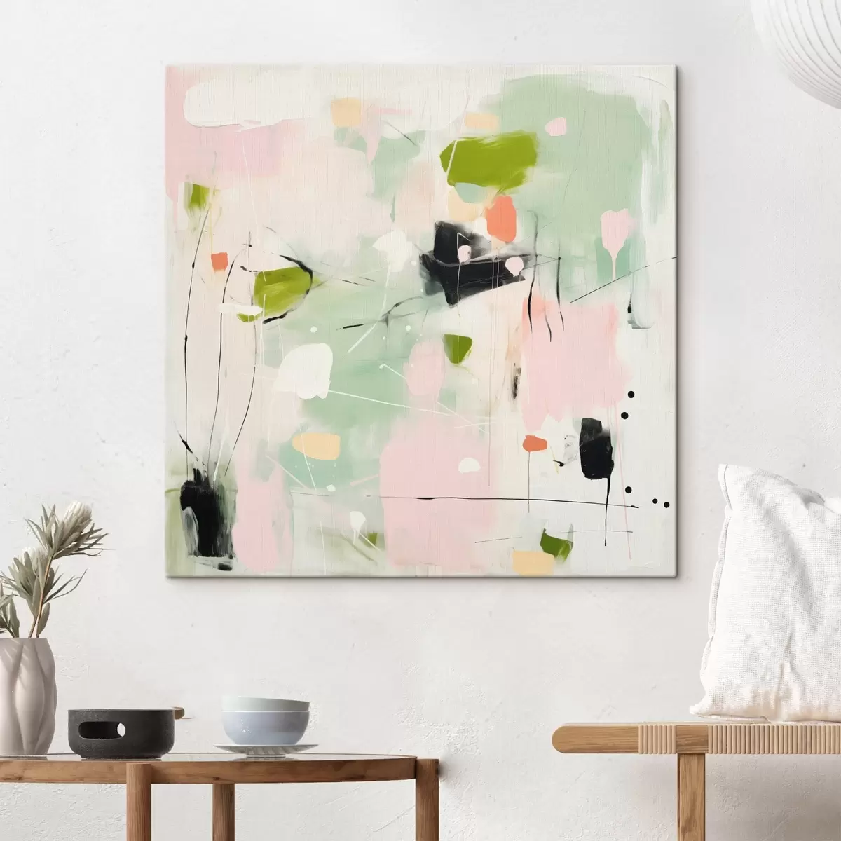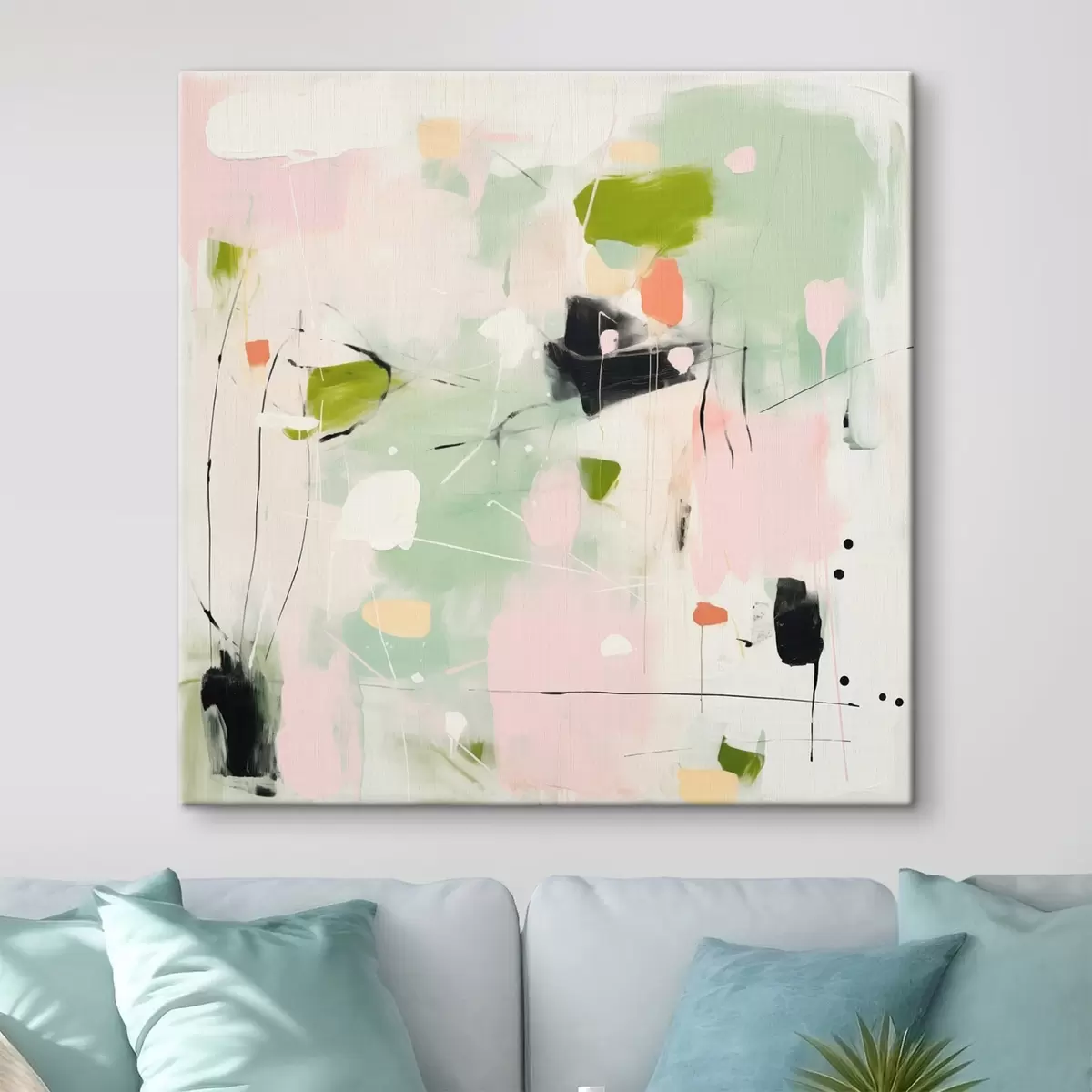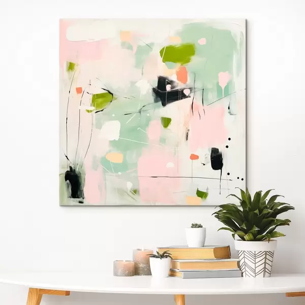 Obraz Różowy i miętowy, pastelowe pociągnięcia pędzla Nr s46324