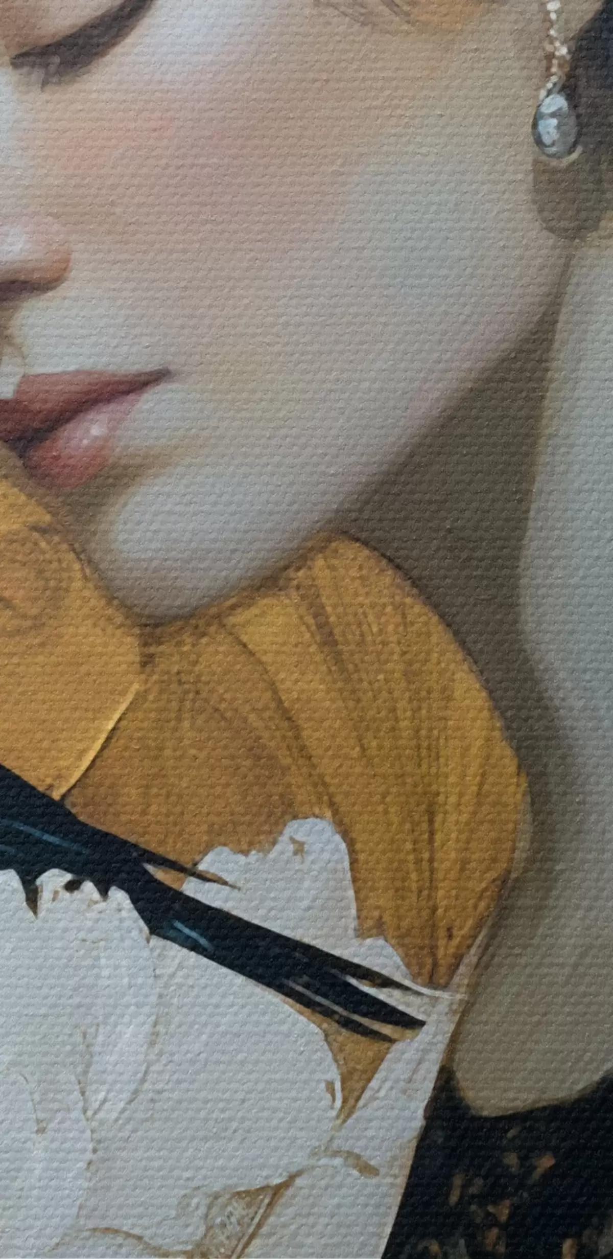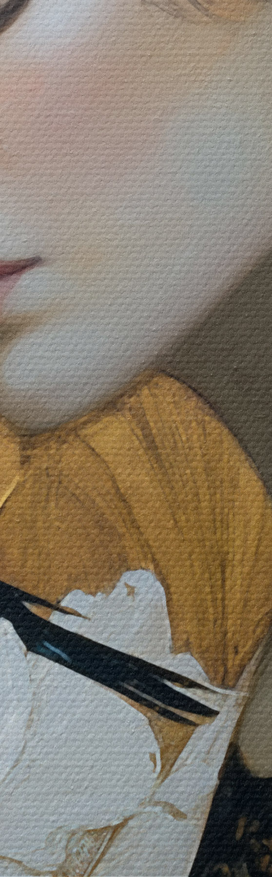 Drobny splot nici na tym płótnie przypomina powierzchnię profesjonalnych płócien artystycznych.