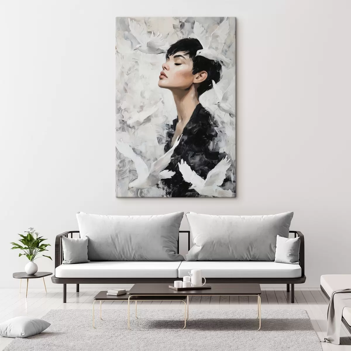 Obraz można delikatnie przetrzeć suchą, miękką szmatką lub gąbką; nie zaleca się używania mokrych produktów. Użycie wilgotnej gąbki jest dozwolone tylko wtedy, gdy obraz został polakierowany.