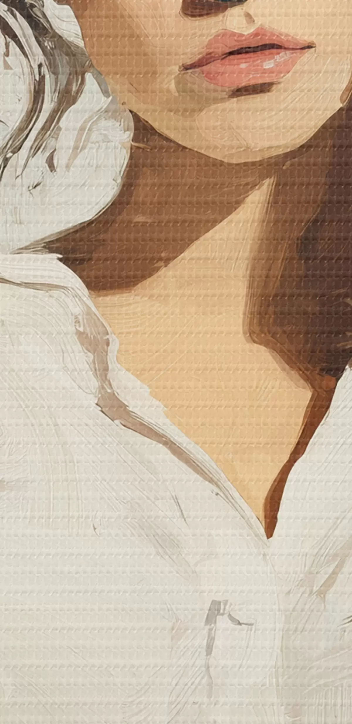 Drobny splot nici na tym płótnie przypomina powierzchnię profesjonalnych płócien artystycznych.