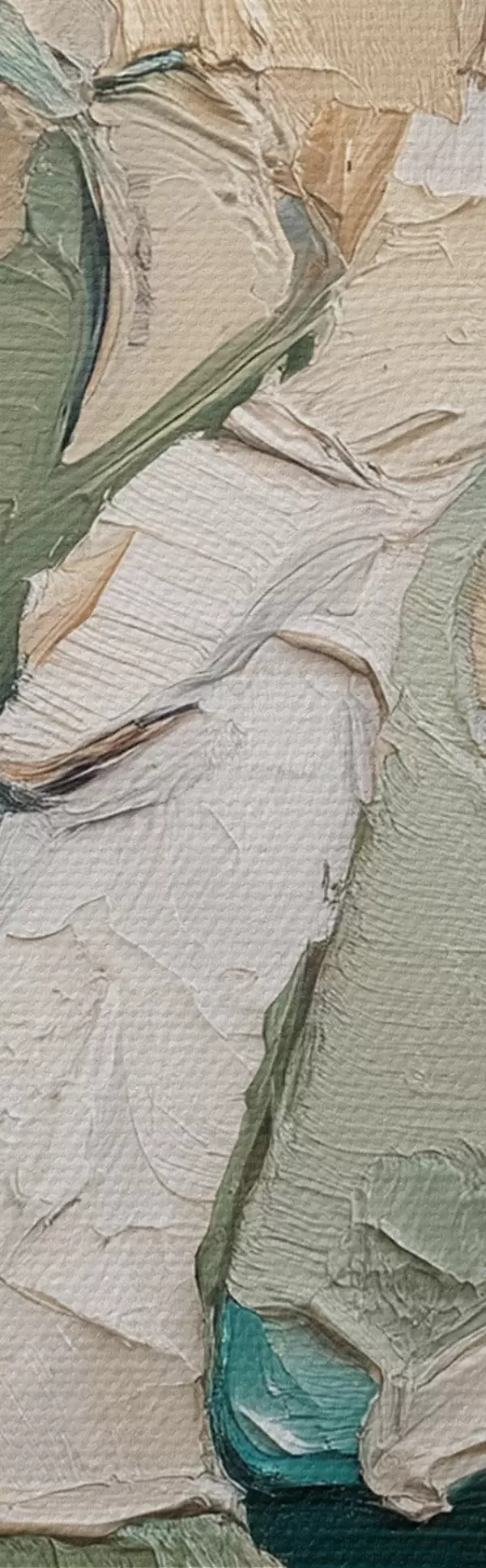 Drobny splot nici na tym płótnie przypomina powierzchnię profesjonalnych płócien artystycznych.