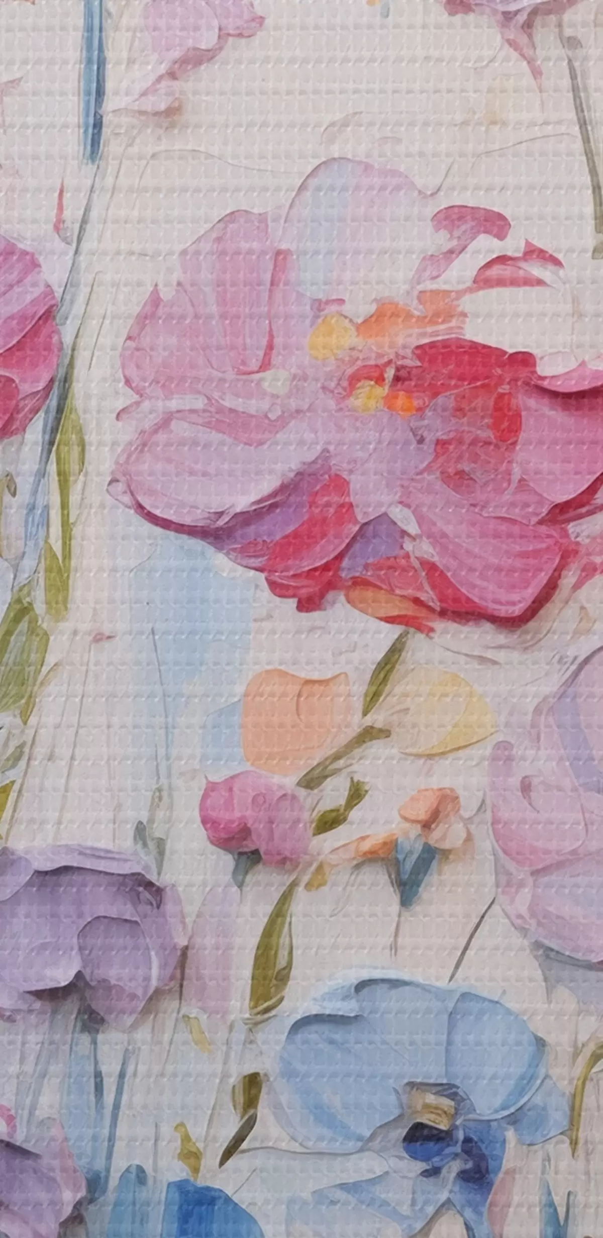 Drobny splot nici na tym płótnie przypomina powierzchnię profesjonalnych płócien artystycznych.