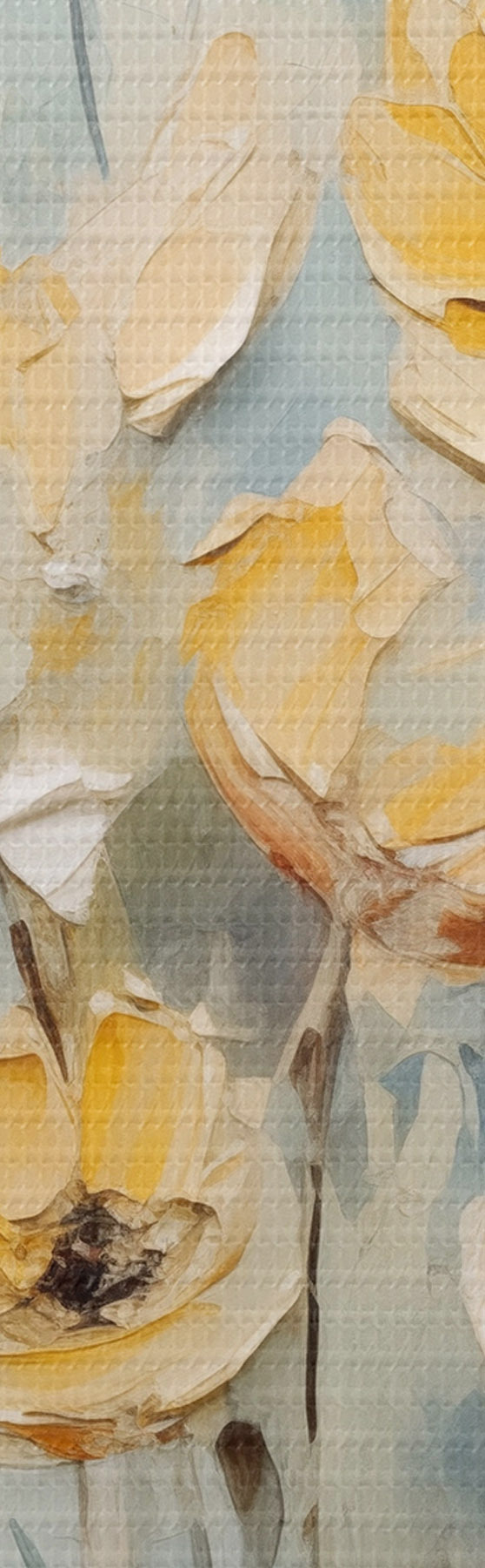 Do zamówienia dostępne są trzy rodzaje materiału: Economic Canvas - gęsty i trwały materiał do druku cyfrowego, identyczny z płótnem malarskim, wodoodporna powierzchnia, realistyczne odwzorowanie szczegółów, materiał średnioziarnisty. Premium Canvas - tekstura przypominająca płótno malarskie (przeplatane drobne nitki). Miękka, szczegółowa reprodukcja obrazu na matowej powierzchni. Eco-Premium - wysokiej jakości tkanina w 100% bawełniana. Dzięki naturalnym włóknom bawełnianym materiał jest trwały i odporny na zużycie. Doskonałe odwzorowanie kolorów i szczegółów.