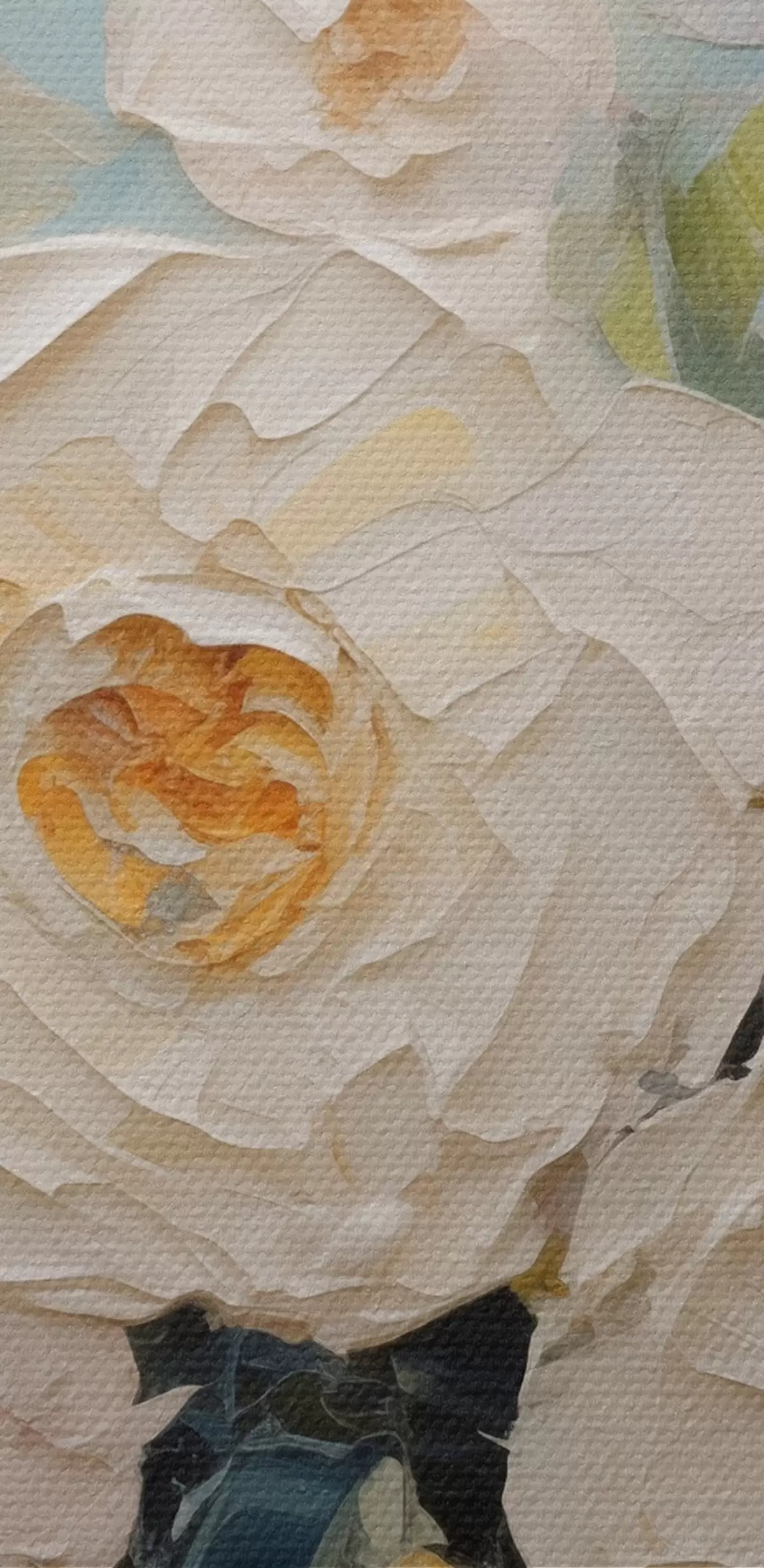 Drobny splot nici na tym płótnie przypomina powierzchnię profesjonalnych płócien artystycznych.