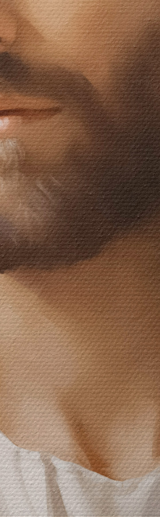 Drobny splot nici na tym płótnie przypomina powierzchnię profesjonalnych płócien artystycznych.