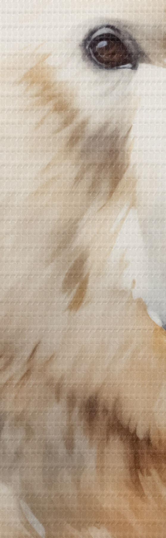 Drobny splot nici na tym płótnie przypomina powierzchnię profesjonalnych płócien artystycznych.