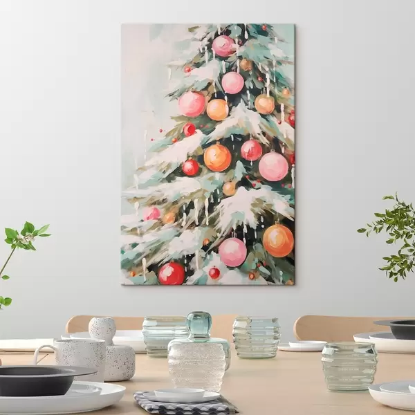 Obraz Choinka z śniegiem i różowymi bombkami Nr s46480