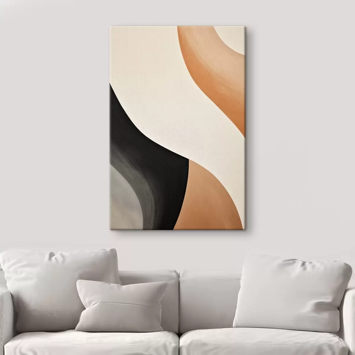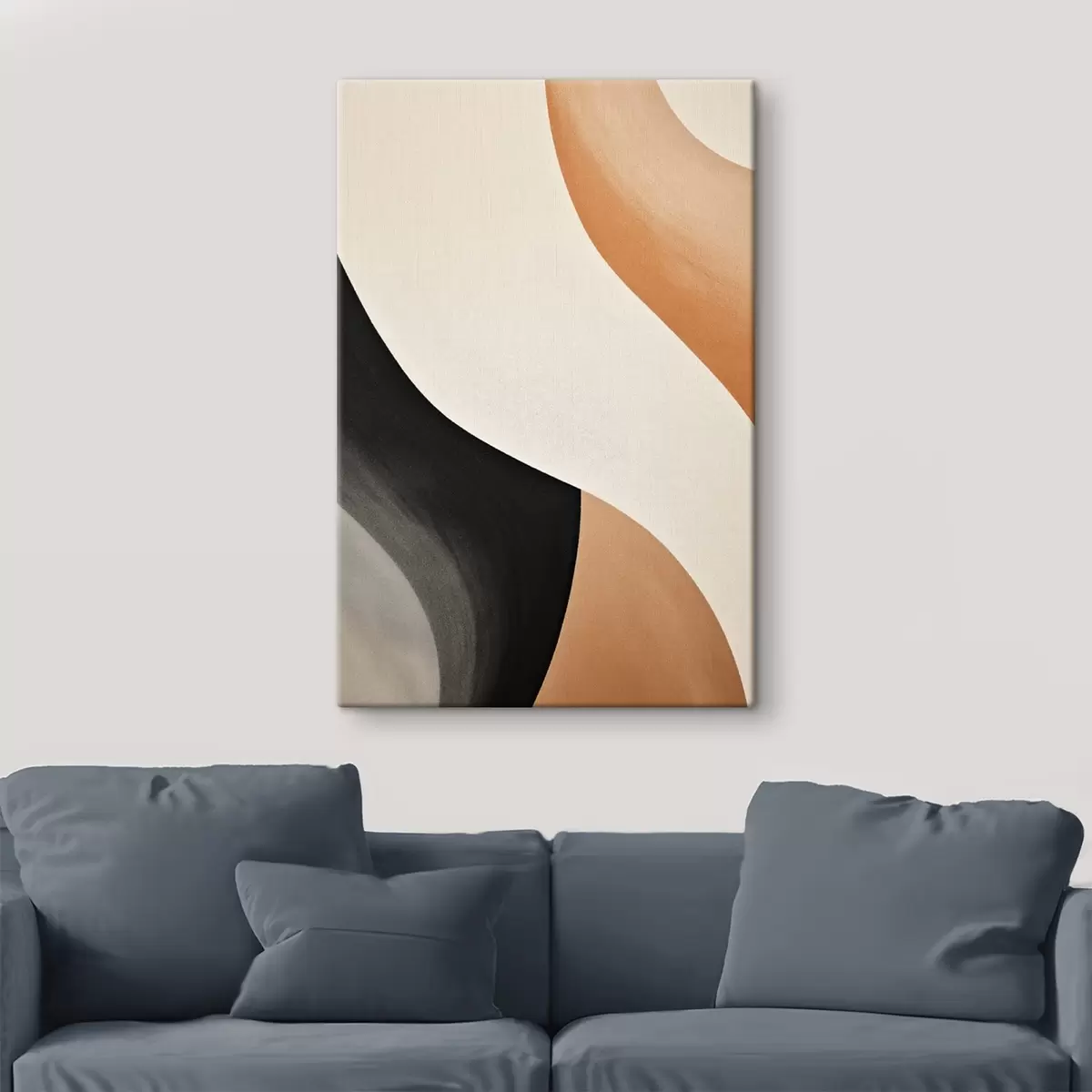 Obraz Wyrazista linia w kształcie litery S w kolorze kremowym, czarnym i z akcentami w kolorze terakoty Nr s46495