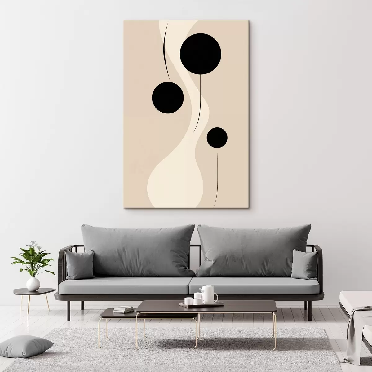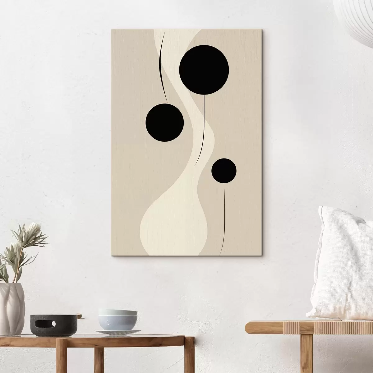 Obraz Minimalistyczne koła na beżowym tle z płynnymi akcentami linii s46496