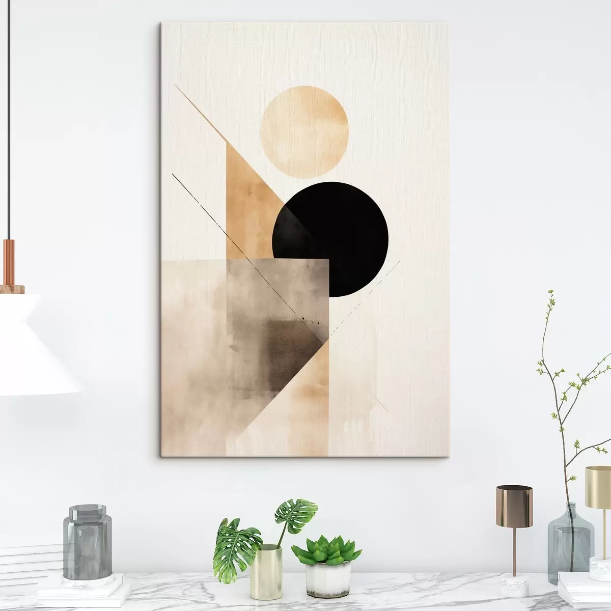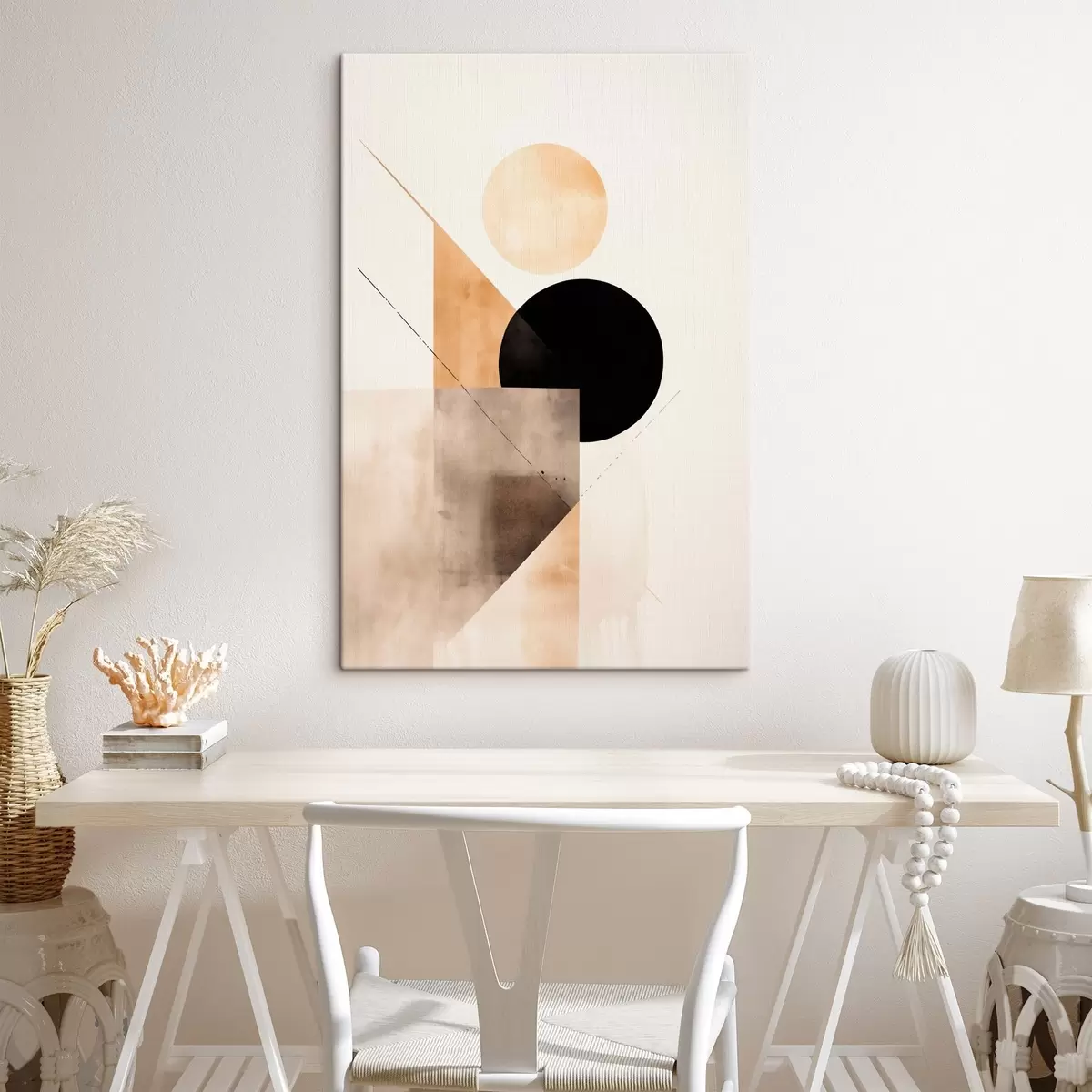 Obraz Minimalistyczna kompozycja: okrąg, trójkąt i płaszczyzny Nr s46532