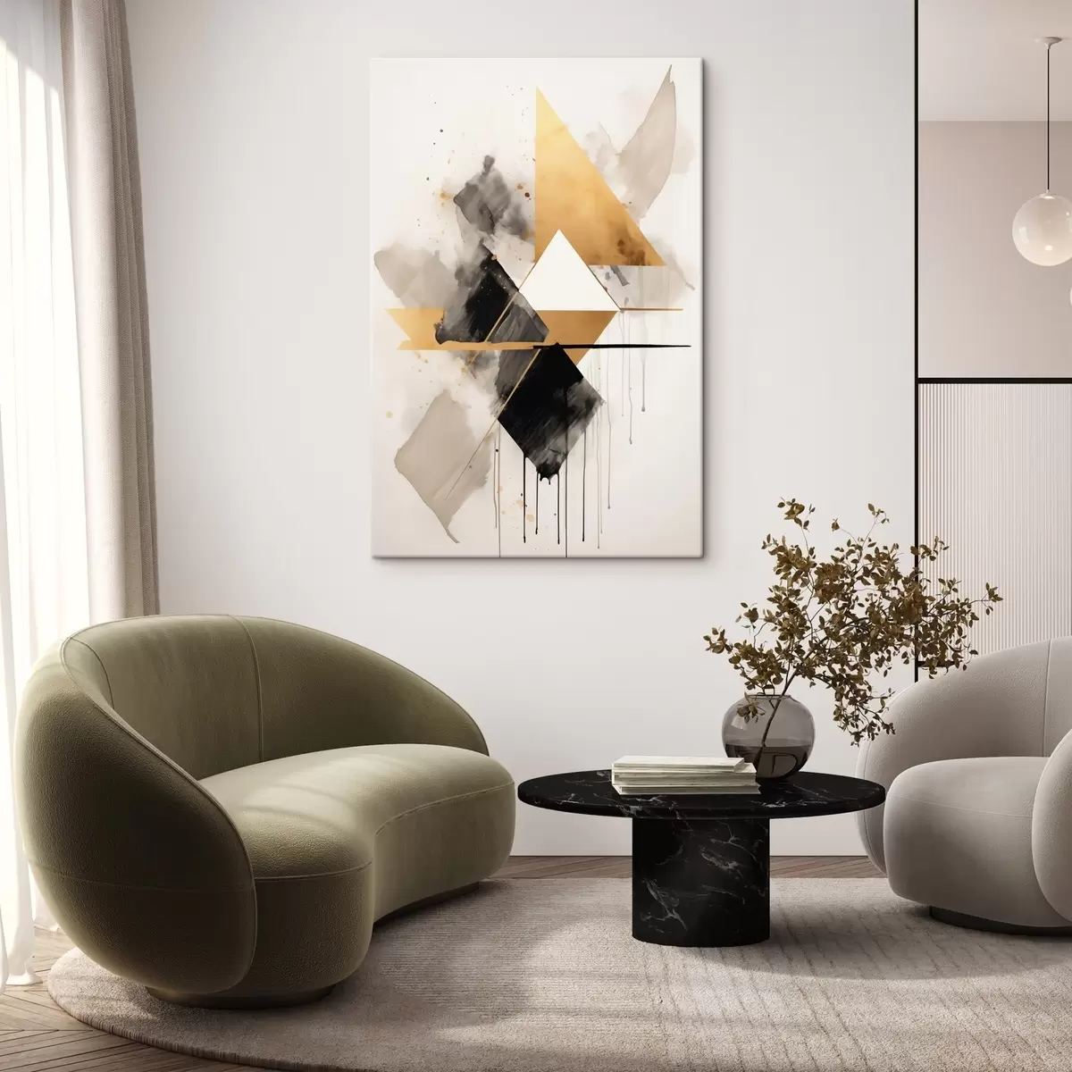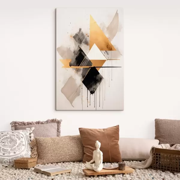 Obraz Geometria z trójkątami i czarnym rombem, beżowe pociągnięcia pędzlem Nr s46539