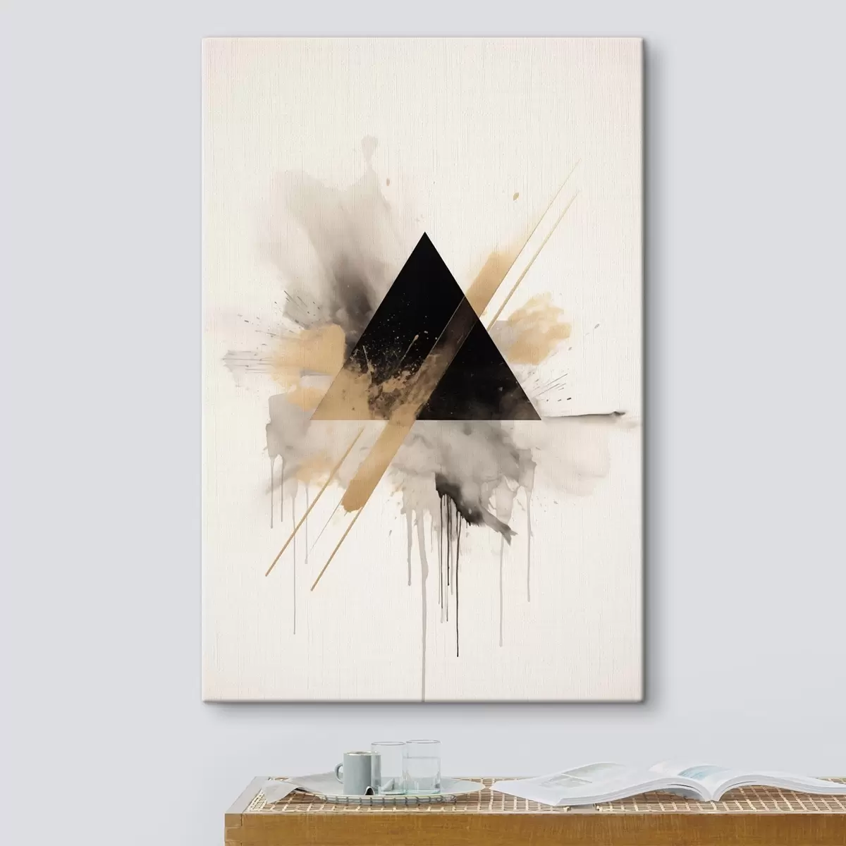 Obraz Geometria: czarny trójkąt z jasnymi plamami i liniami Nr s46540