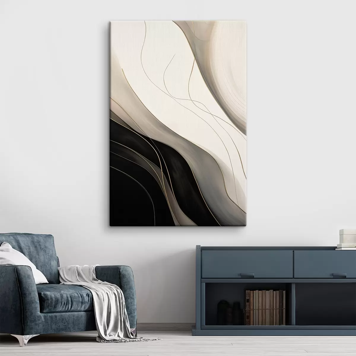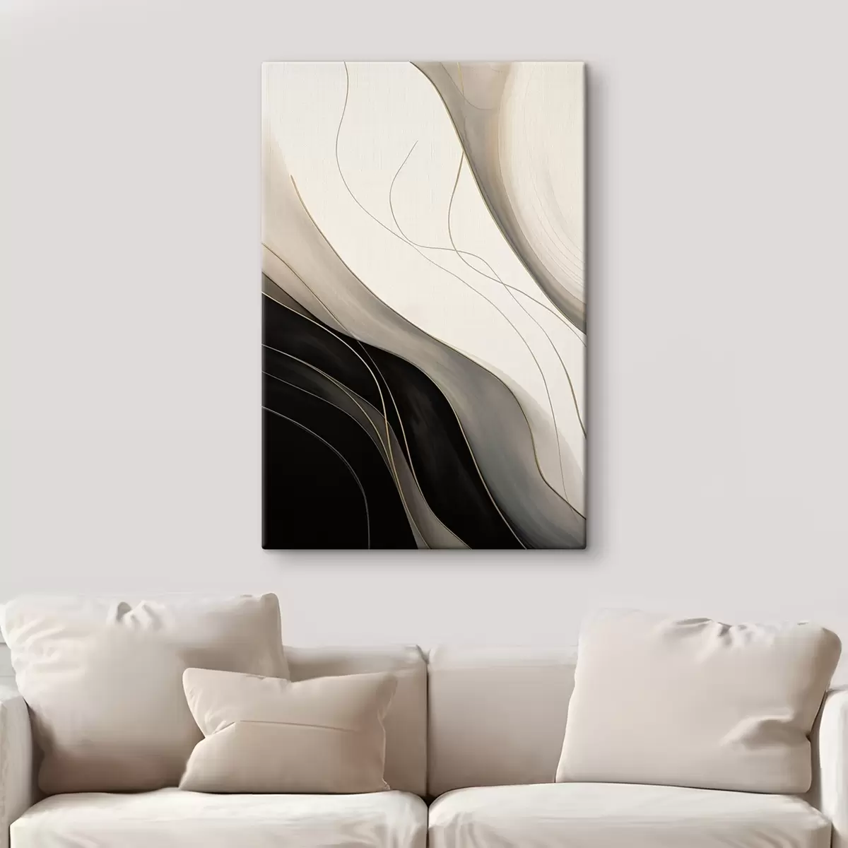 Obraz Fale w kolorze czarnym i beżowym z delikatnymi ochrowymi liniami s46541