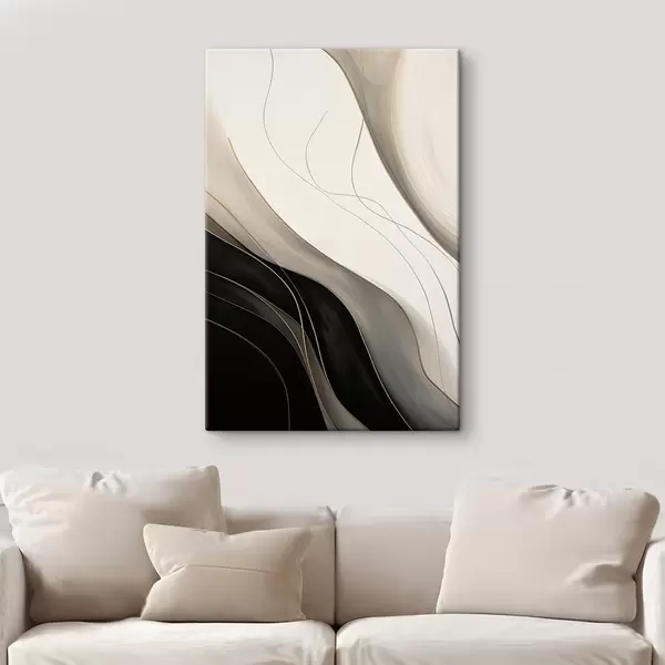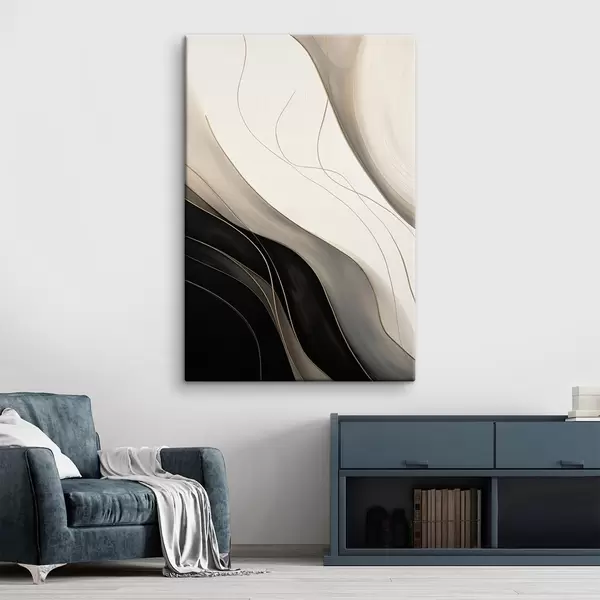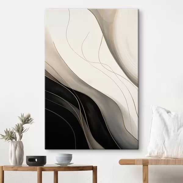Obraz Fale w kolorze czarnym i beżowym z delikatnymi ochrowymi liniami Nr s46541