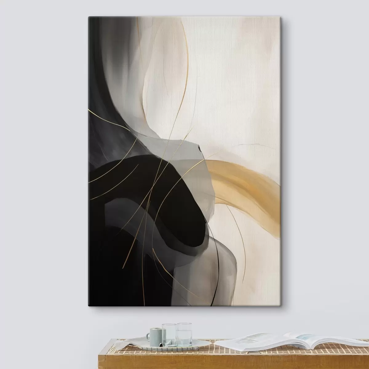 Obraz Delikatne krzywizny w kolorze czarnym i beżowym z ciepłym akcentem s46542