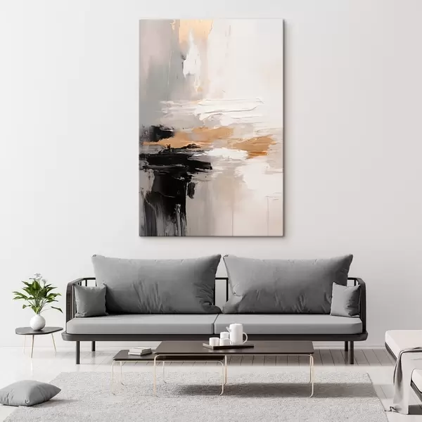 Obraz Pomalowane w odcieniach nude, z kontrastującą czarną i ochrową warstwą s46544