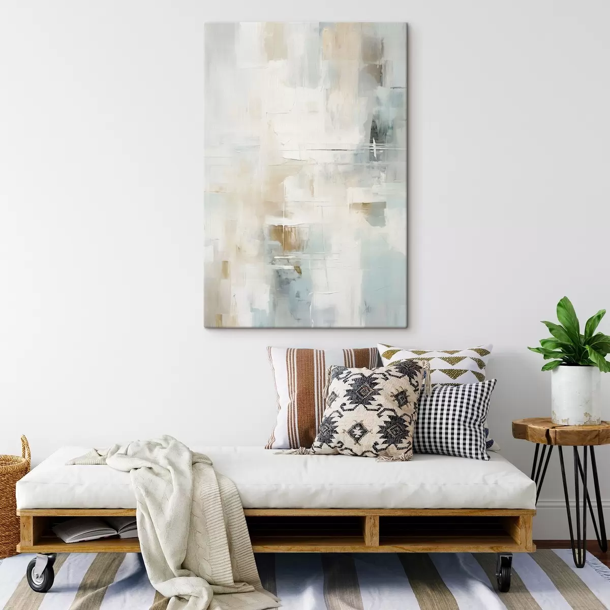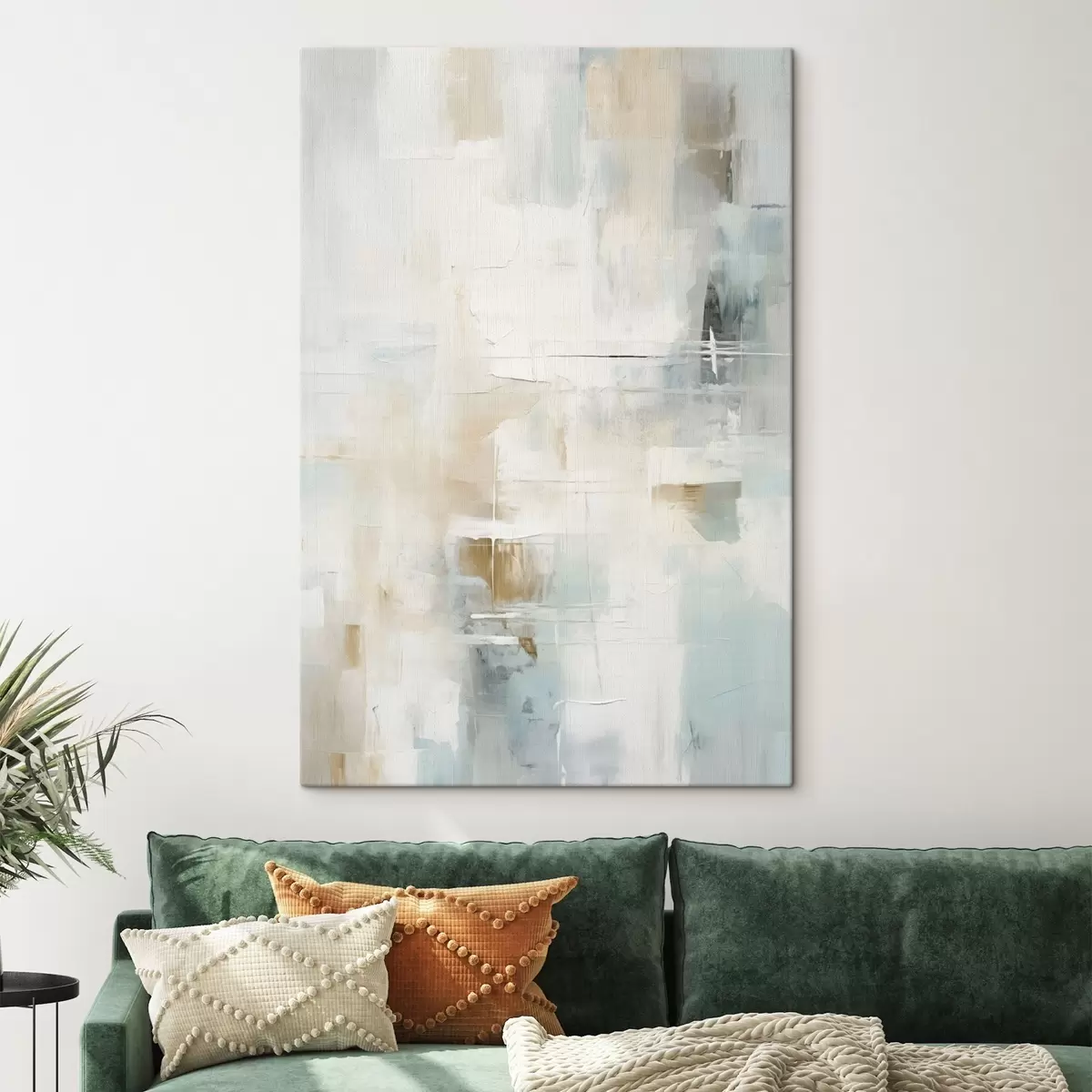 Obraz Powietrzne pociągnięcia pędzla w kolorze niebieskim i beżowym na białym tle Nr s46547