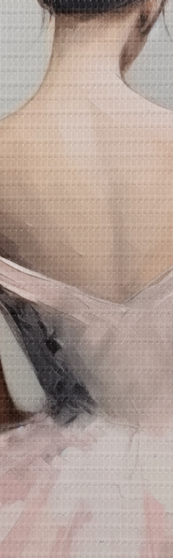 Drobny splot nici na tym płótnie przypomina powierzchnię profesjonalnych płócien artystycznych.