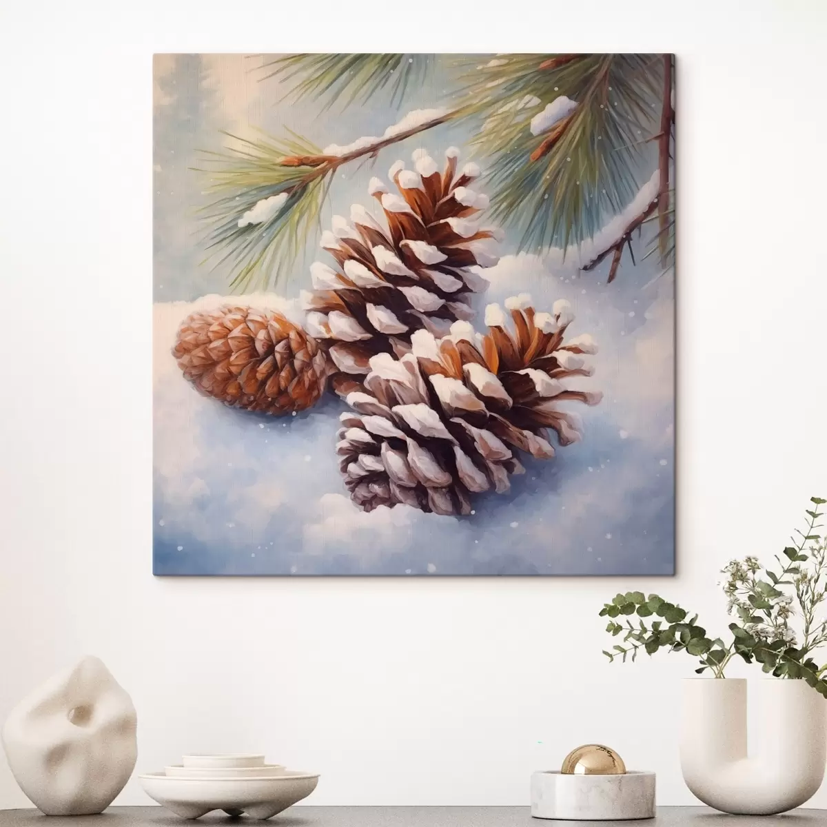 Obraz Pokryte śniegiem szyszki i gałęzie sosny Nr s46631