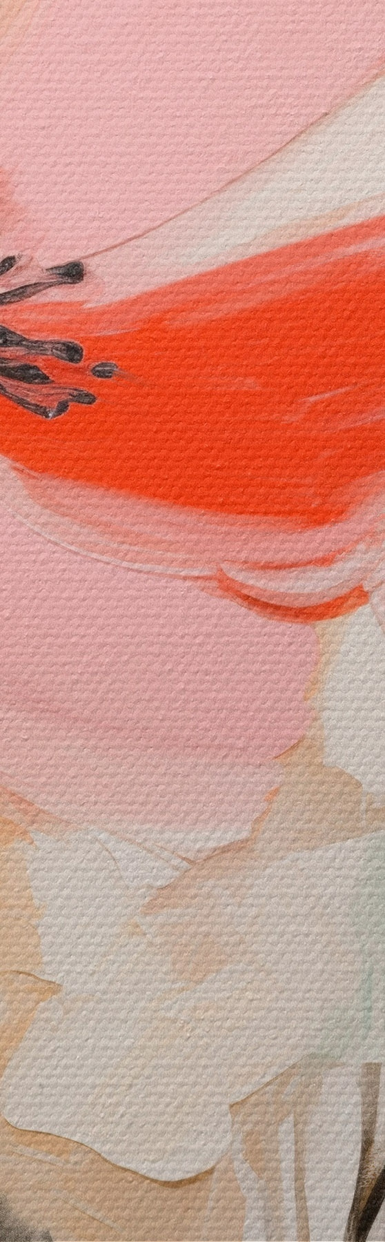 Obraz Różowe i czarne kwiaty z liśćmi, delikatne pastelowe kolory, abstrakcyjna kompozycja kwiatowa, minimalistyczna sztuka Nr s46687