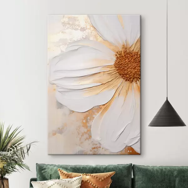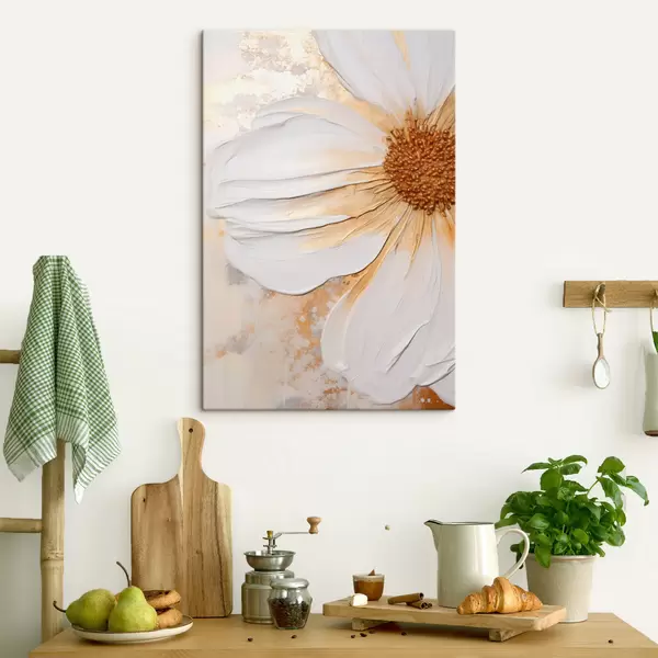 Obraz Biały kwiat o delikatnych płatkach, teksturowane abstrakcyjne tło, elegancka, dekoracyjna sztuka Nr s46692