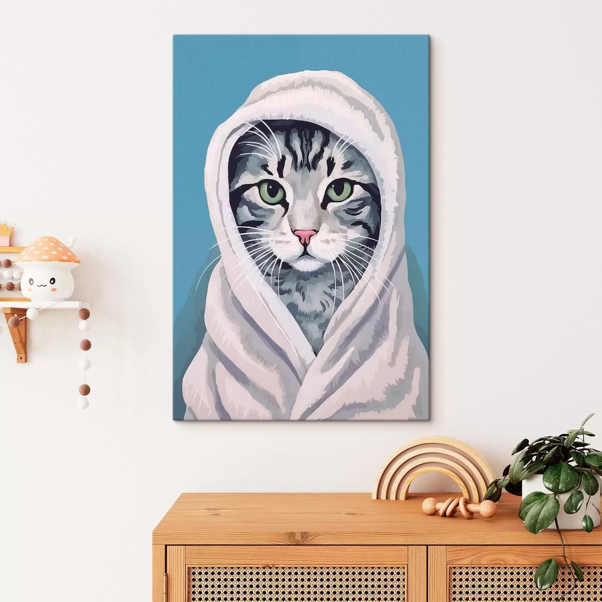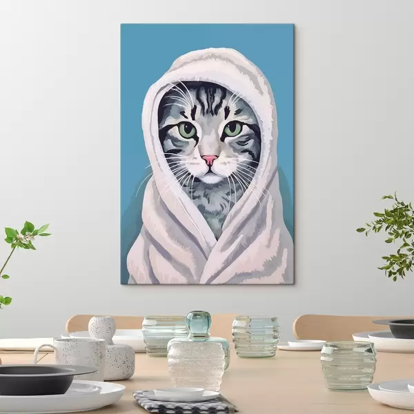 Obraz Pasiasty kot w białym ręczniku Nr s46740