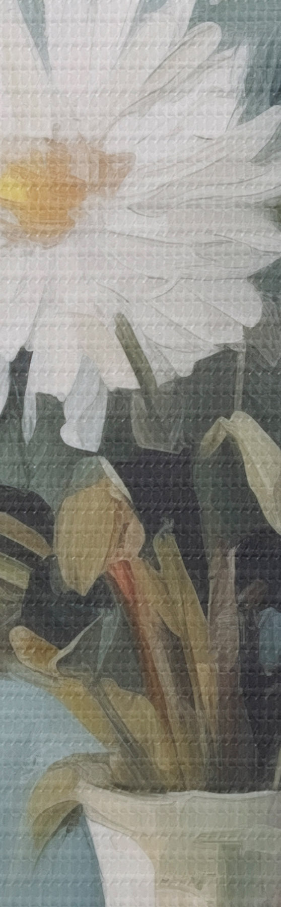 Drobny splot nici na tym płótnie przypomina powierzchnię profesjonalnych płócien artystycznych.