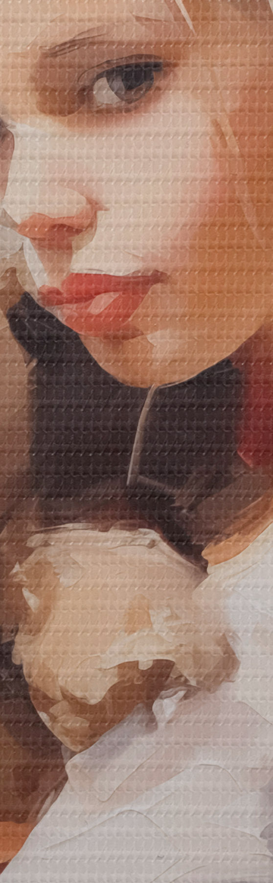 Do zamówienia dostępne są trzy rodzaje materiału: Economic Canvas - gęsty i trwały materiał do druku cyfrowego, identyczny z płótnem malarskim, wodoodporna powierzchnia, realistyczne odwzorowanie szczegółów, materiał średnioziarnisty. Premium Canvas - tekstura przypominająca płótno malarskie (przeplatane drobne nitki). Miękka, szczegółowa reprodukcja obrazu na matowej powierzchni. Eco-Premium - wysokiej jakości tkanina w 100% bawełniana. Dzięki naturalnym włóknom bawełnianym materiał jest trwały i odporny na zużycie. Doskonałe odwzorowanie kolorów i szczegółów.