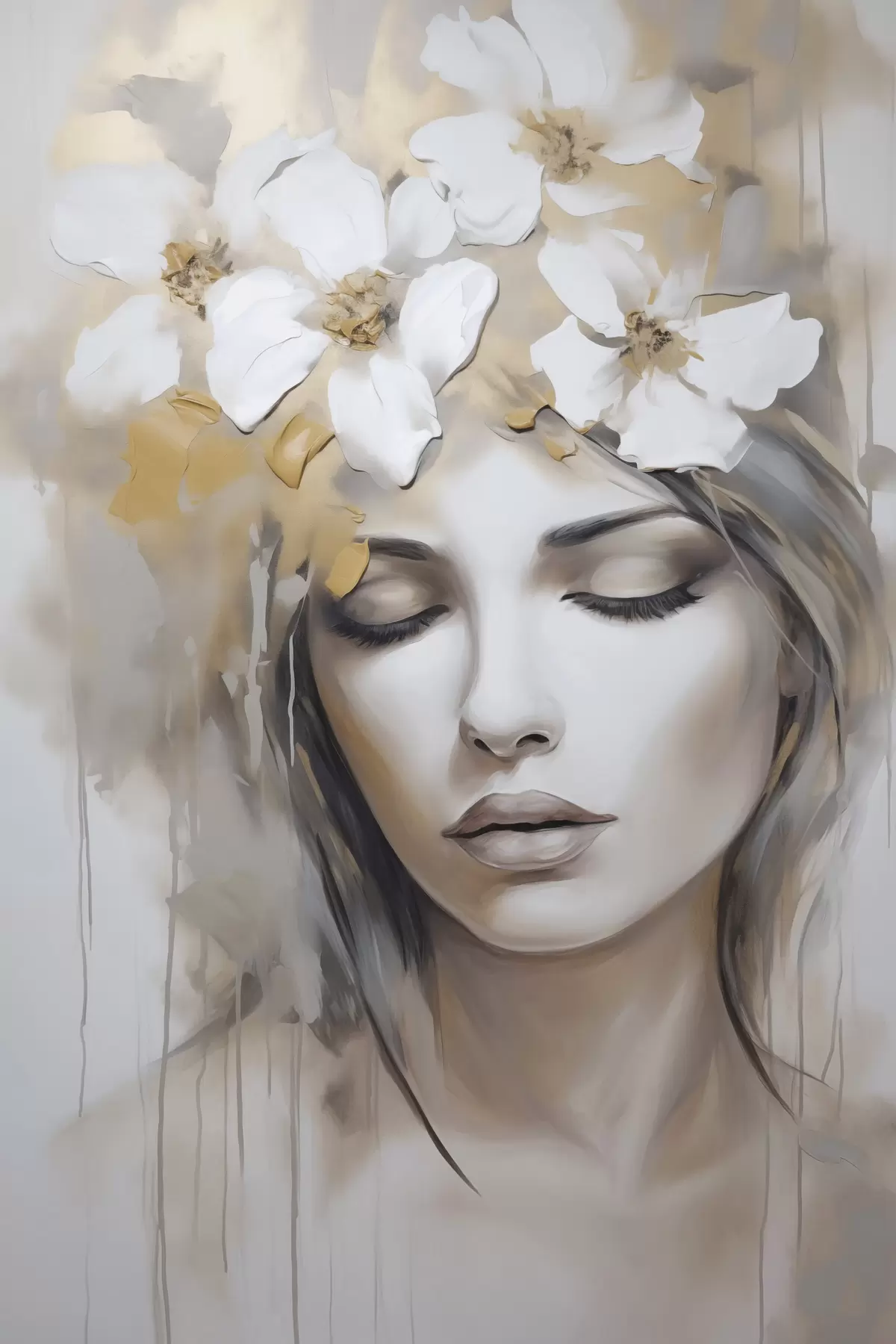 Obraz Abstrakcyjny portret dziewczyny z kwiatami, imitacja obrazu Nr s46756
