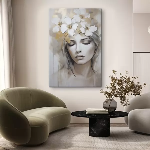 Obraz Abstrakcyjny portret dziewczyny z kwiatami, imitacja obrazu s46756