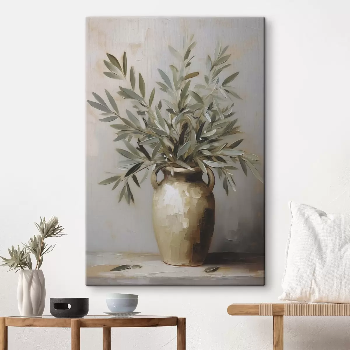 Obraz Oliwkowe gałązki w wazonie – imitacja obrazu s46758