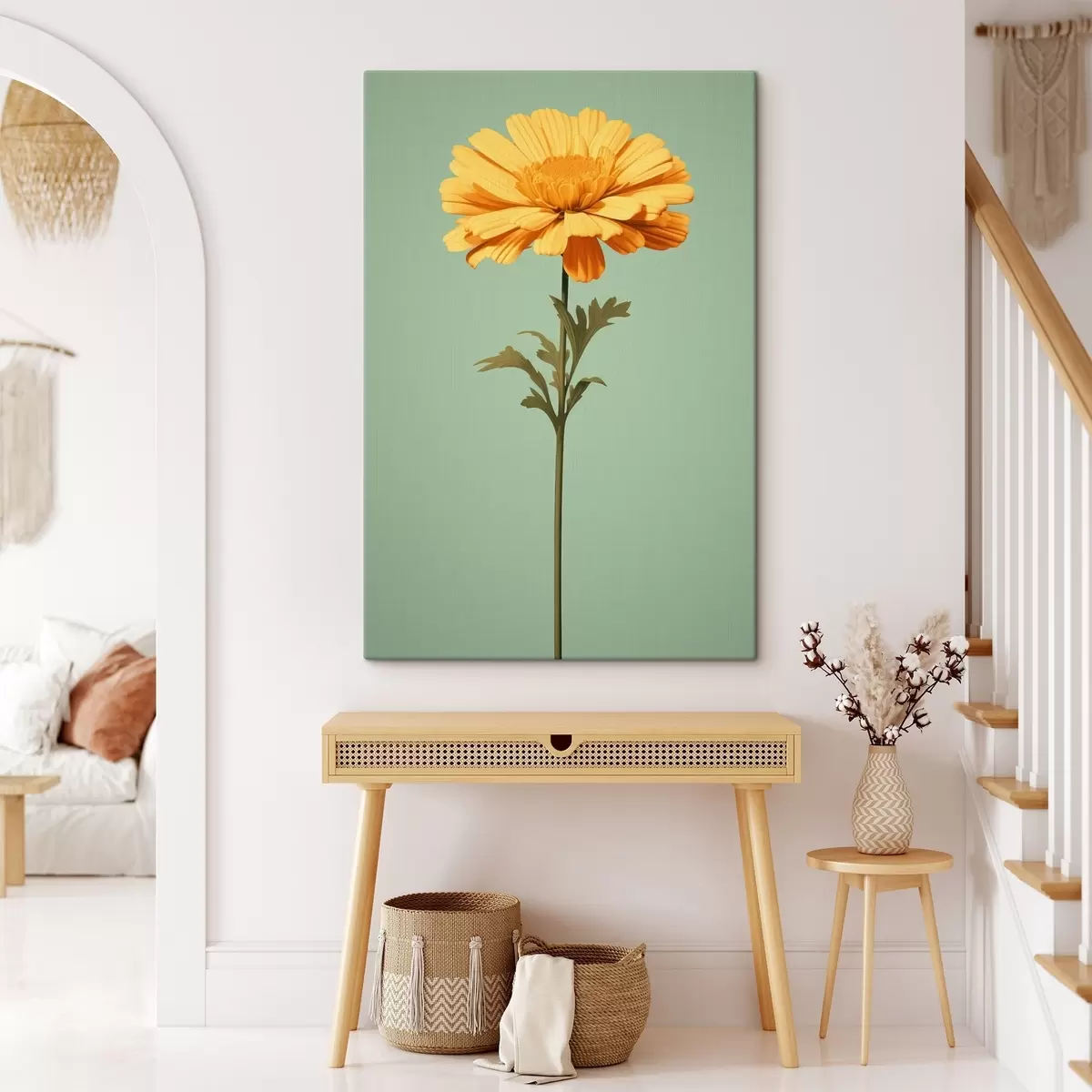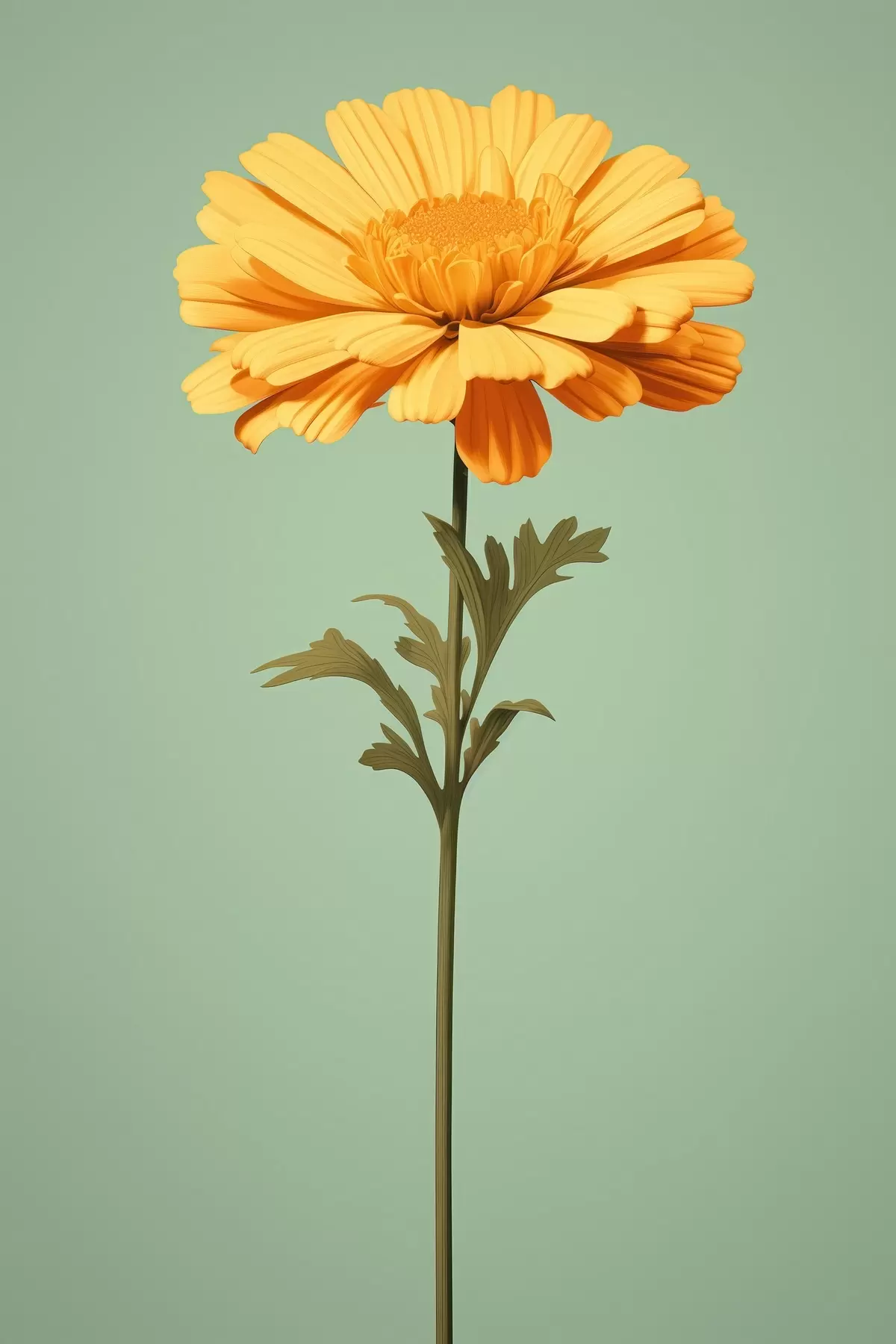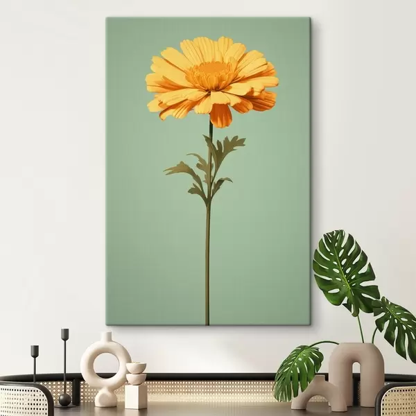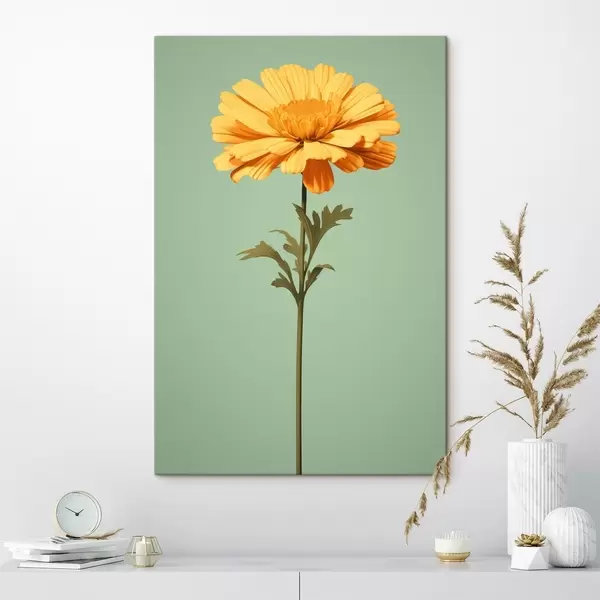 Obraz Żółty nagietek na miętowym tle w minimalistycznym stylu Nr s46926