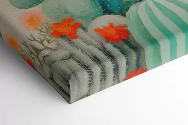 Obraz Kwitnące kaktusy z różowymi i pomarańczowymi kwiatami w stylu ilustracji Nr s46934