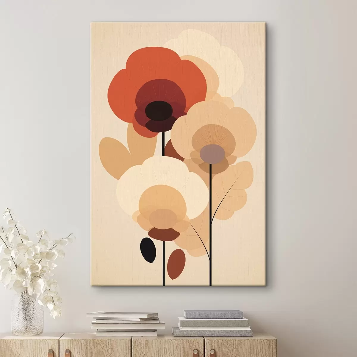 Obraz Abstrakcyjne kwiaty w ciepłej beżowej palecie w minimalistycznym stylu Nr s46942