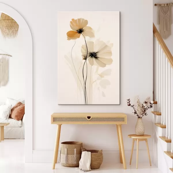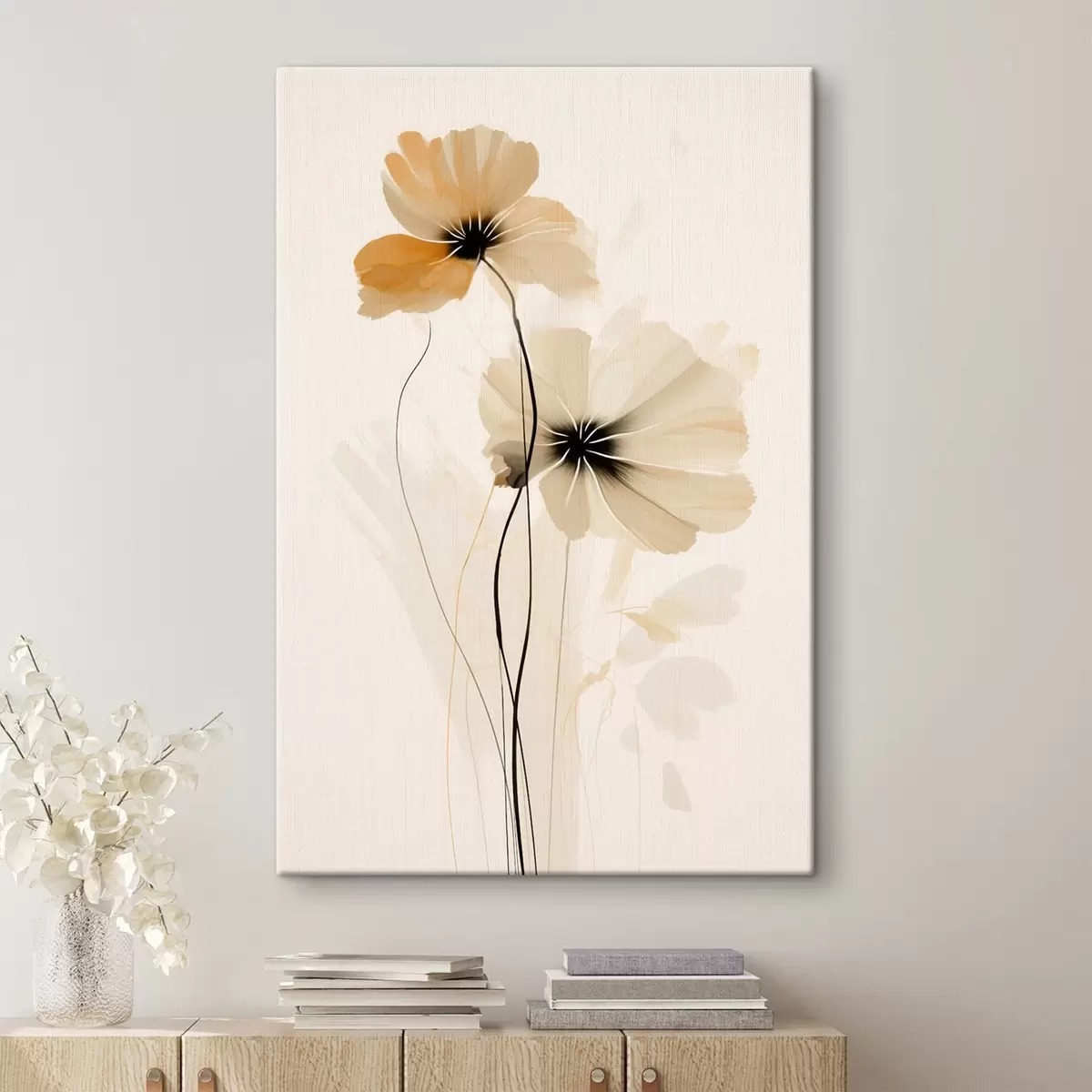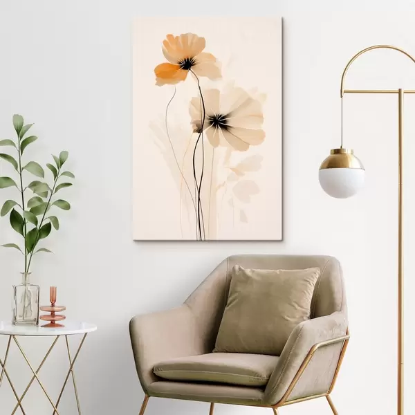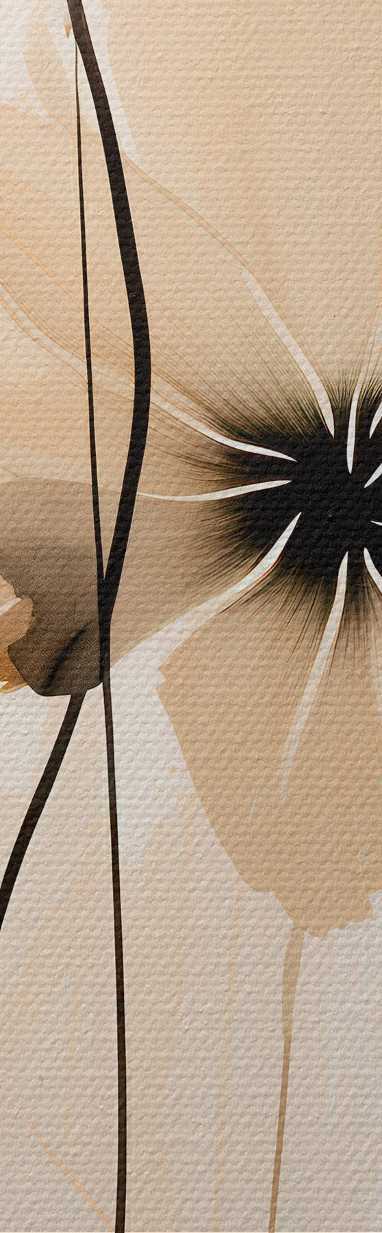 Obraz Kwiaty w beżowo-brzoskwiniowej palecie kolorów z ciemnymi środkami w minimalistycznym stylu Nr s46945
