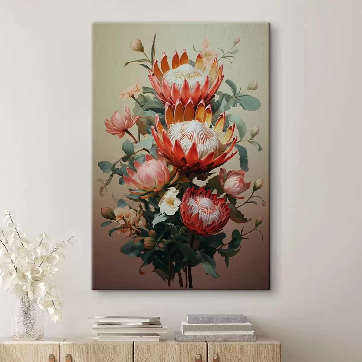 Obraz Kompozycja z dużymi proteami w nowoczesnym stylu cyfrowej ilustracji malarskiej Nr s46947