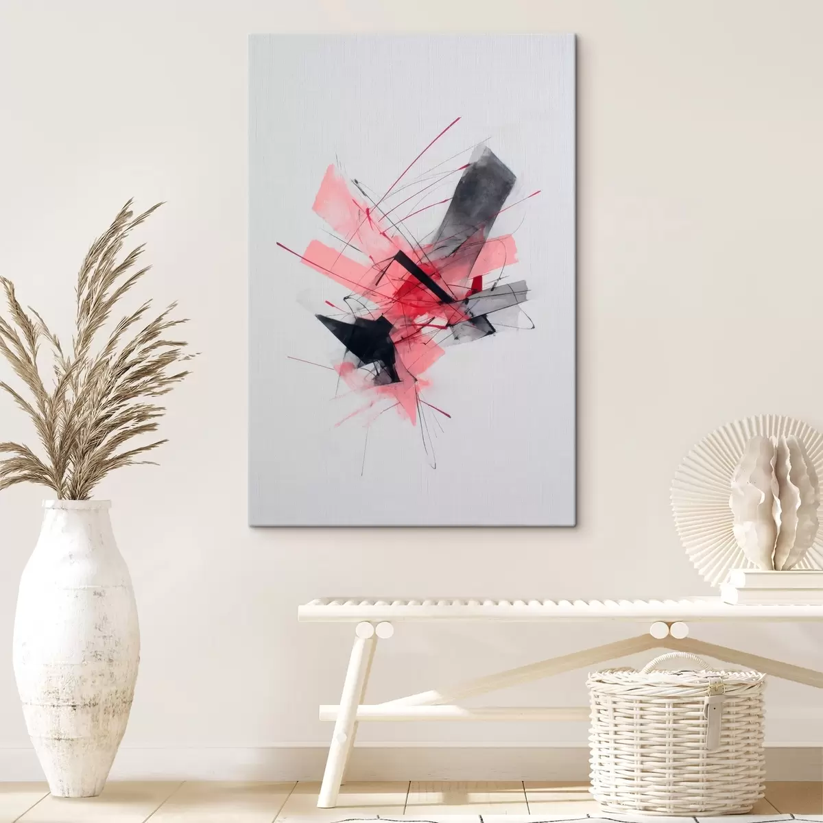 Obraz Abstrakcja z różowymi i czarnymi elementami geometrycznymi Nr s46950