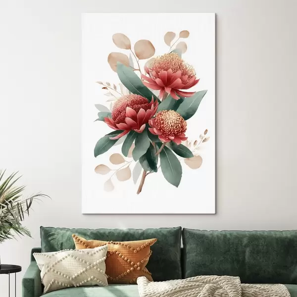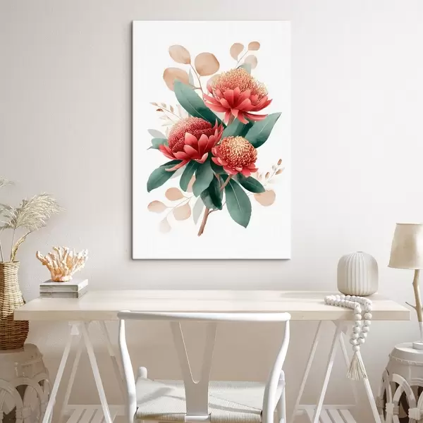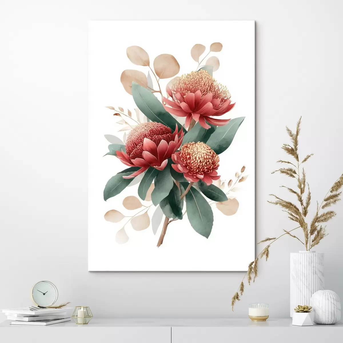 Obraz Wyrazisty bukiet protei i ozdobnych liści w stylu ilustracji sztuki nowoczesnej s46954