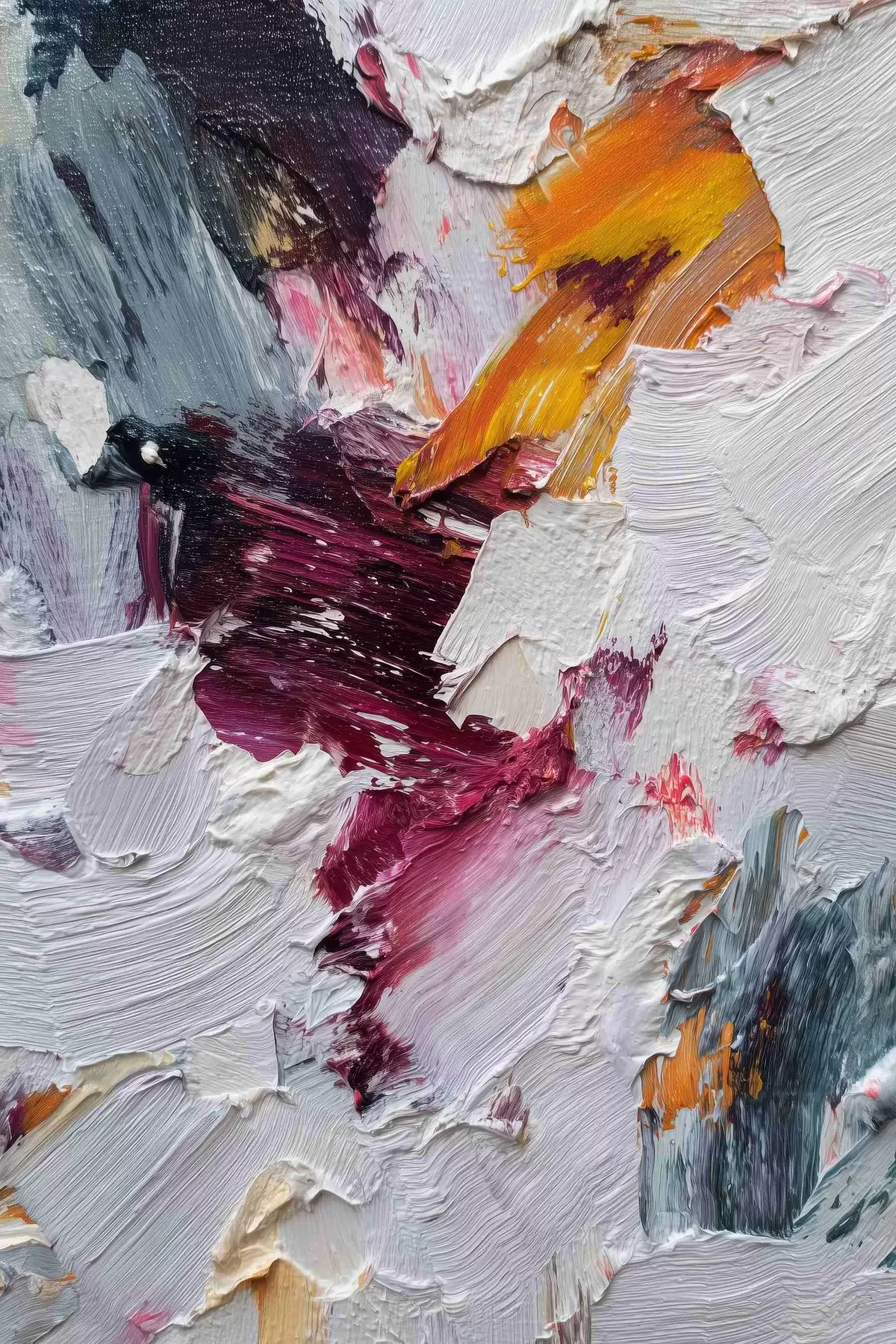 Obraz Abstrakcyjna kompozycja z intensywnymi pociągnięciami pędzla w kolorze wiśniowym i pomarańczowym w stylu malarstwa olejnego. Nr s46959