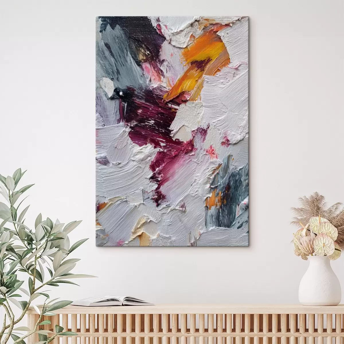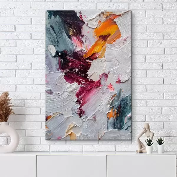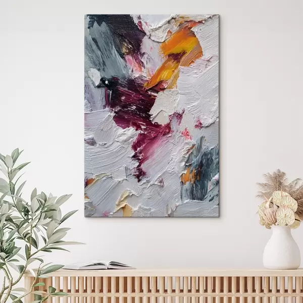 Obraz Abstrakcyjna kompozycja z intensywnymi pociągnięciami pędzla w kolorze wiśniowym i pomarańczowym w stylu malarstwa olejnego. s46959