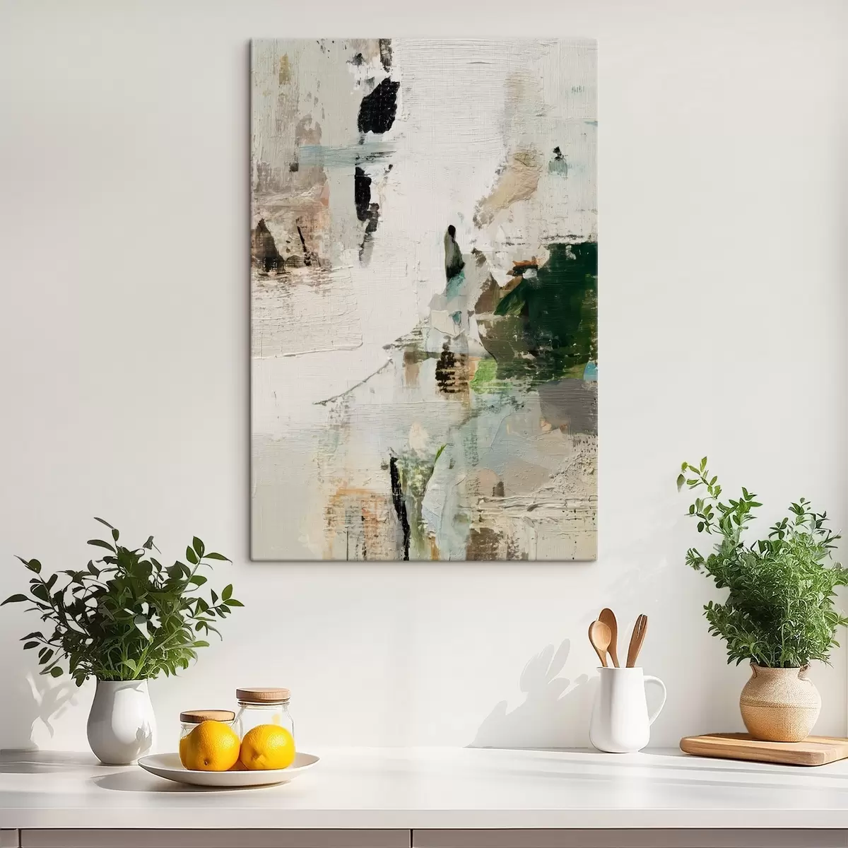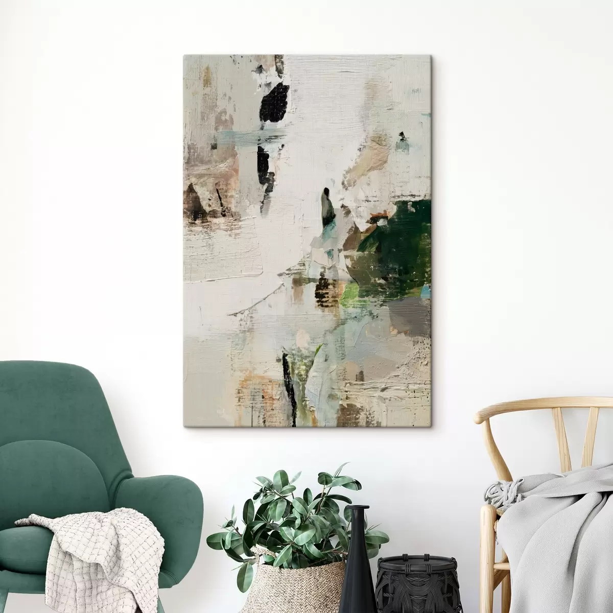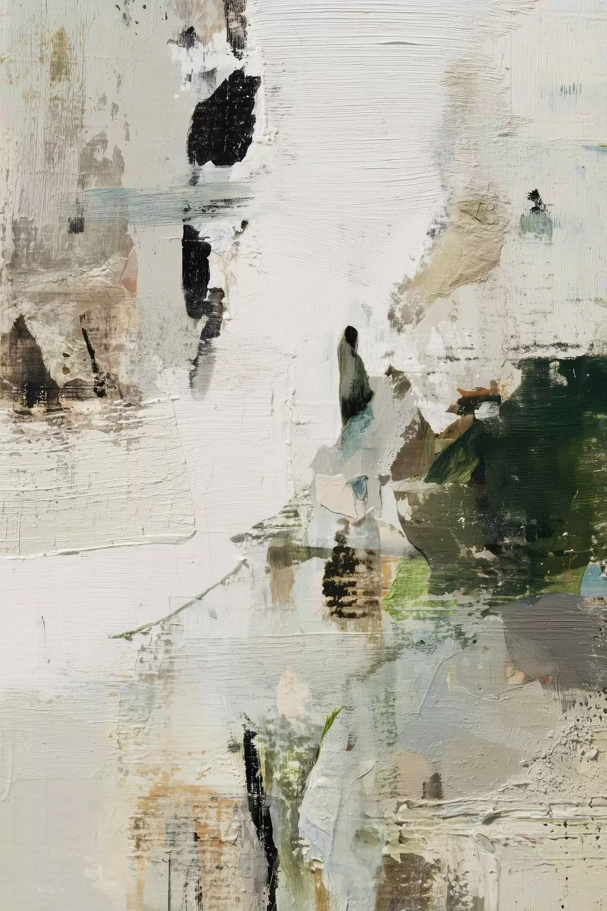 Obraz Abstrakcyjna kompozycja w pastelowych odcieniach z ciemnozielonymi akcentami w stylu malarstwa olejnego s46960
