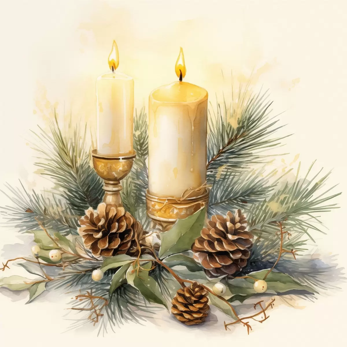 Obraz Kompozycja, Nowy Rok, jodła i świece s46971