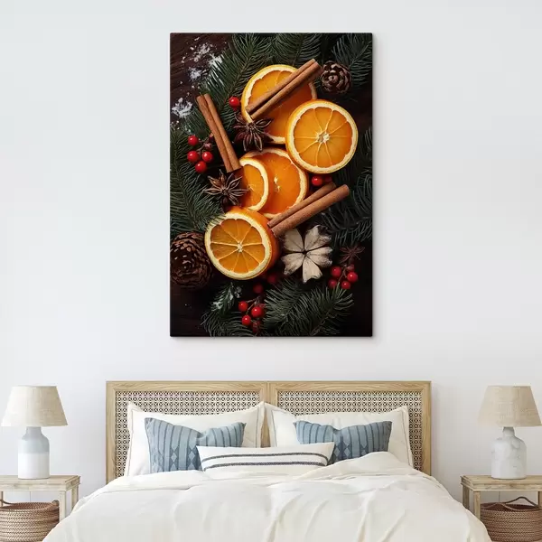 Obraz Rysunek owoców, pomarańczy i cynamonu Nr s46986