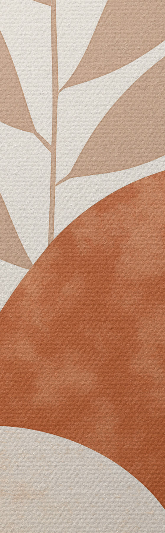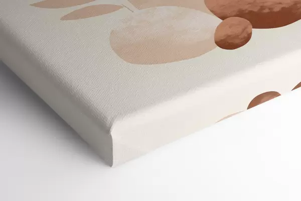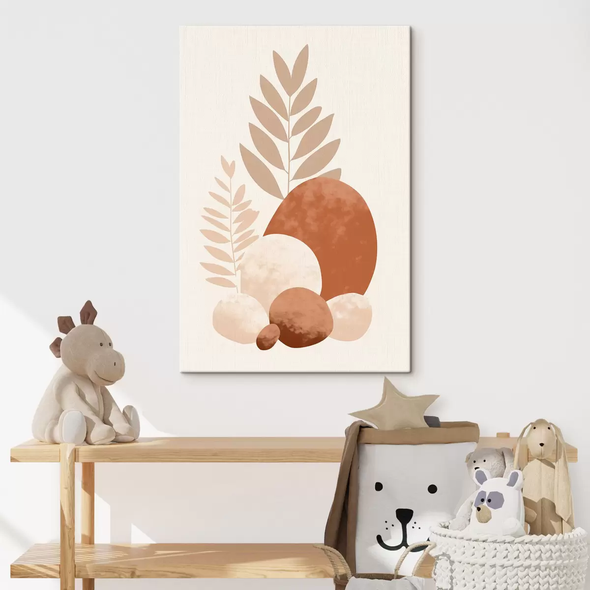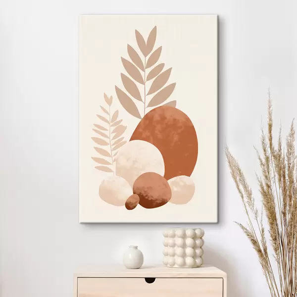 Obraz Abstrakcyjne kształty, kamienie o fakturze i liście w stonowanych odcieniach brzoskwini i terakoty, minimalistyczne, kremowe tło. s47013
