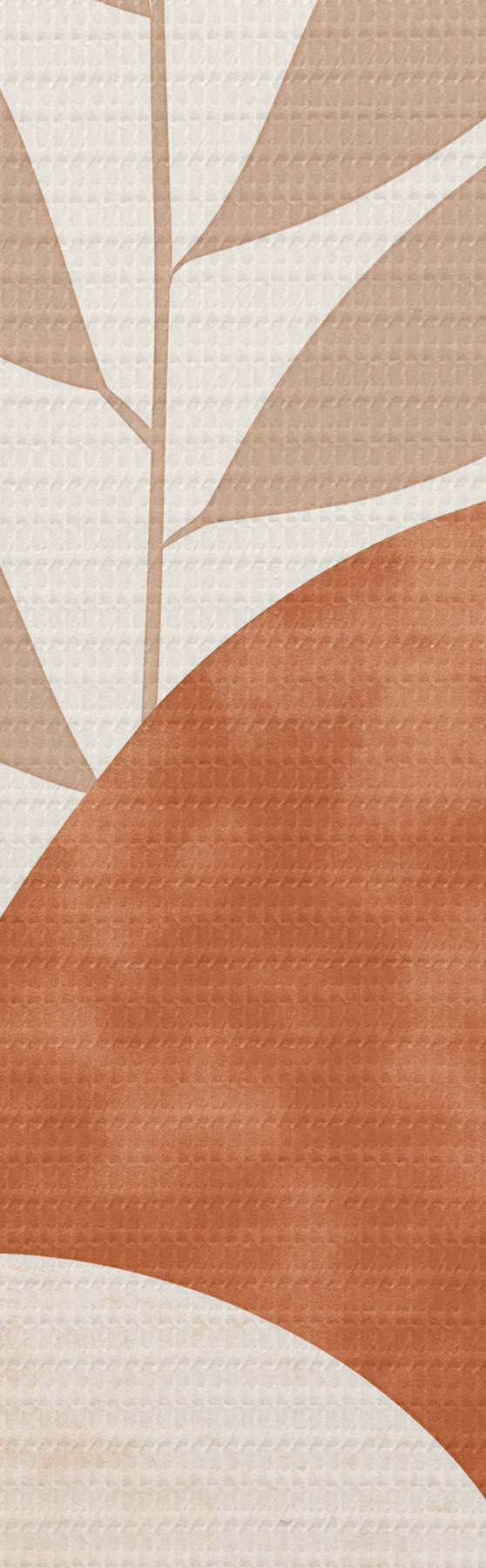 Obraz Abstrakcyjne kształty, kamienie o fakturze i liście w stonowanych odcieniach brzoskwini i terakoty, minimalistyczne, kremowe tło. Nr s47013