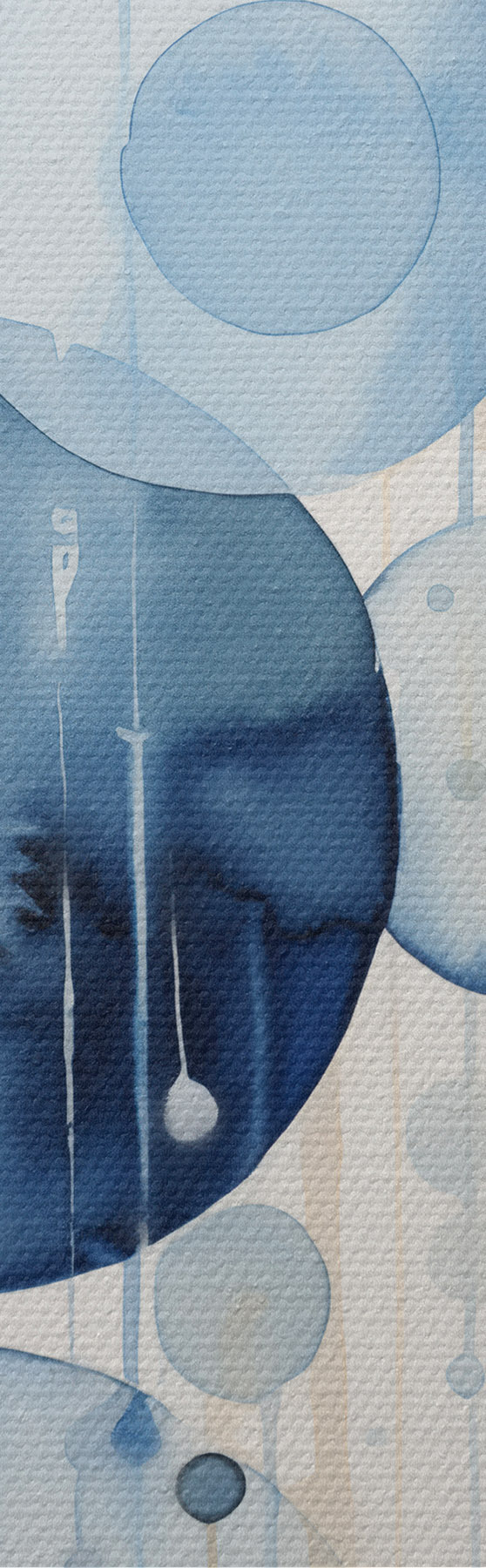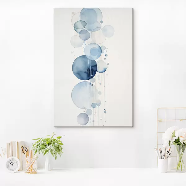 Obraz Abstrakcyjne, teksturowane niebiesko-białe koła o różnych rozmiarach, namalowane akwarelą na białym tle. s47021